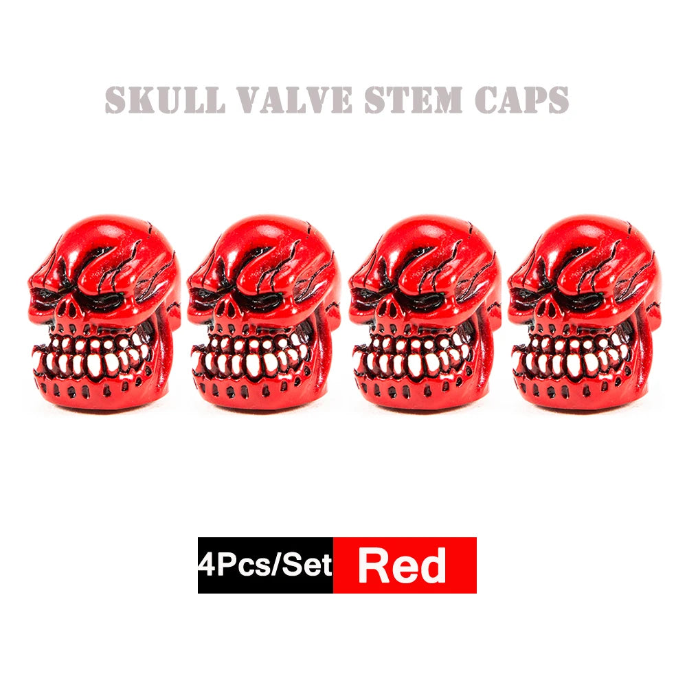 Red Skulls 4Pcs/Set Universal Stem Valve Caps, Attractive Dustproof Car Accessories