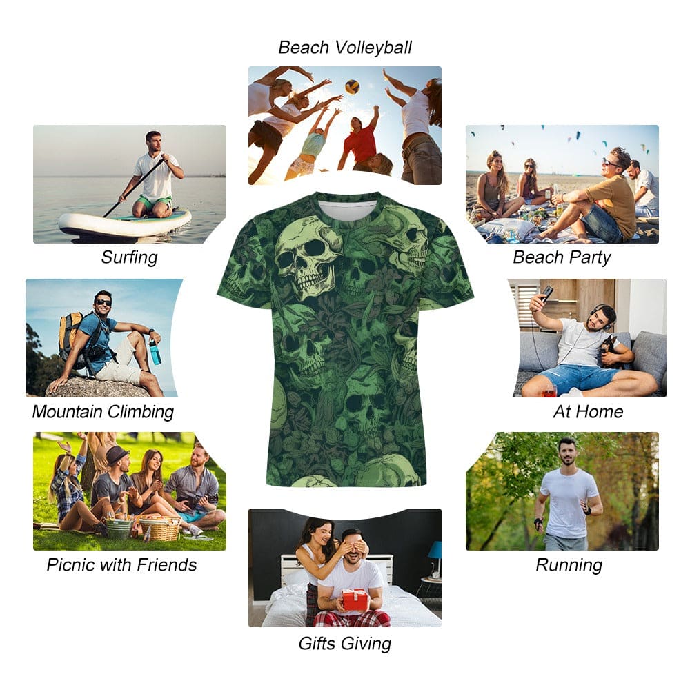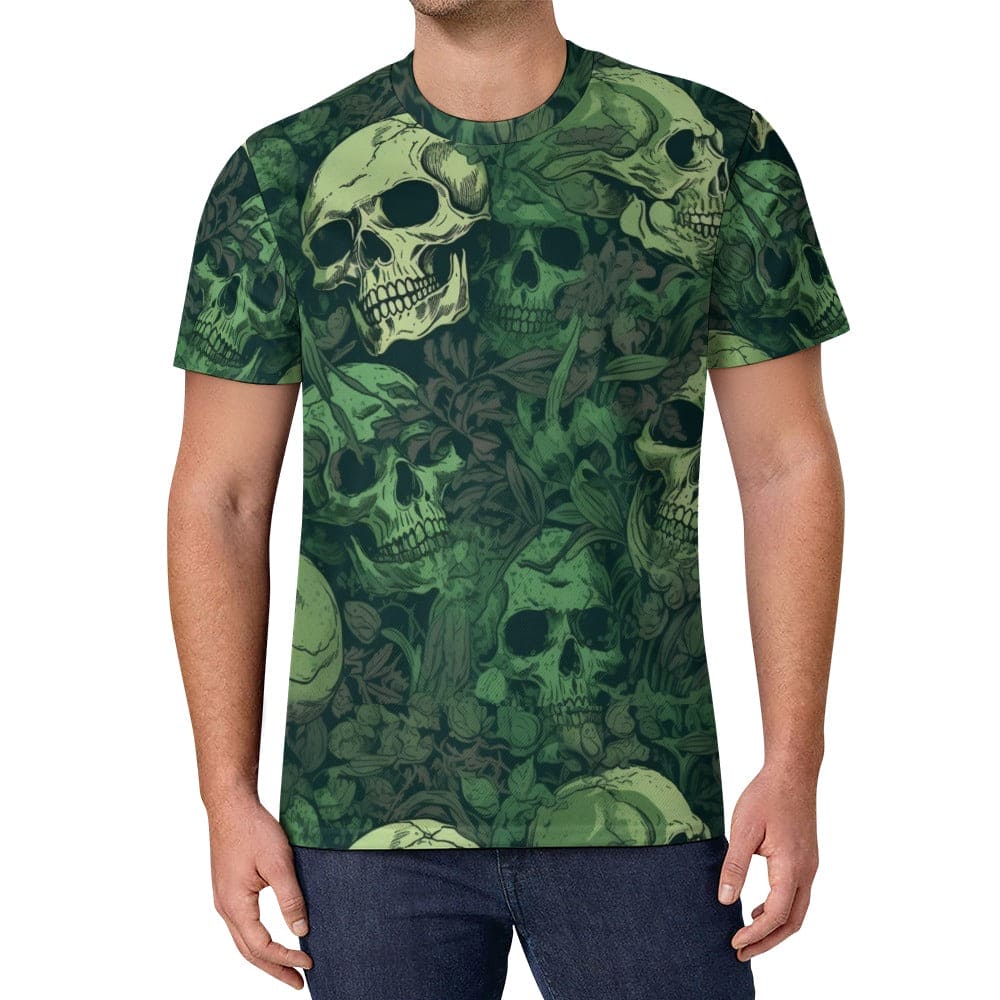 Men's Ice Silk Green Skulls Short Sleeve T-shirt
