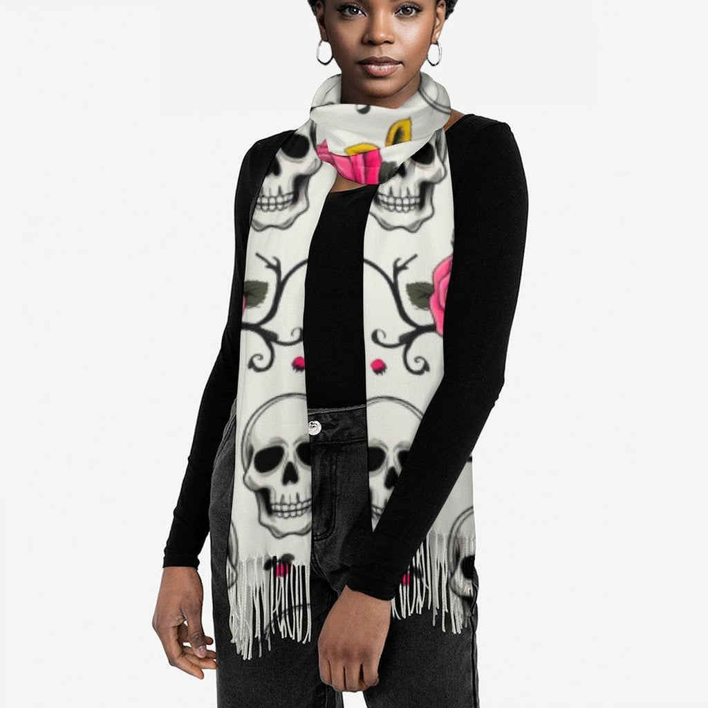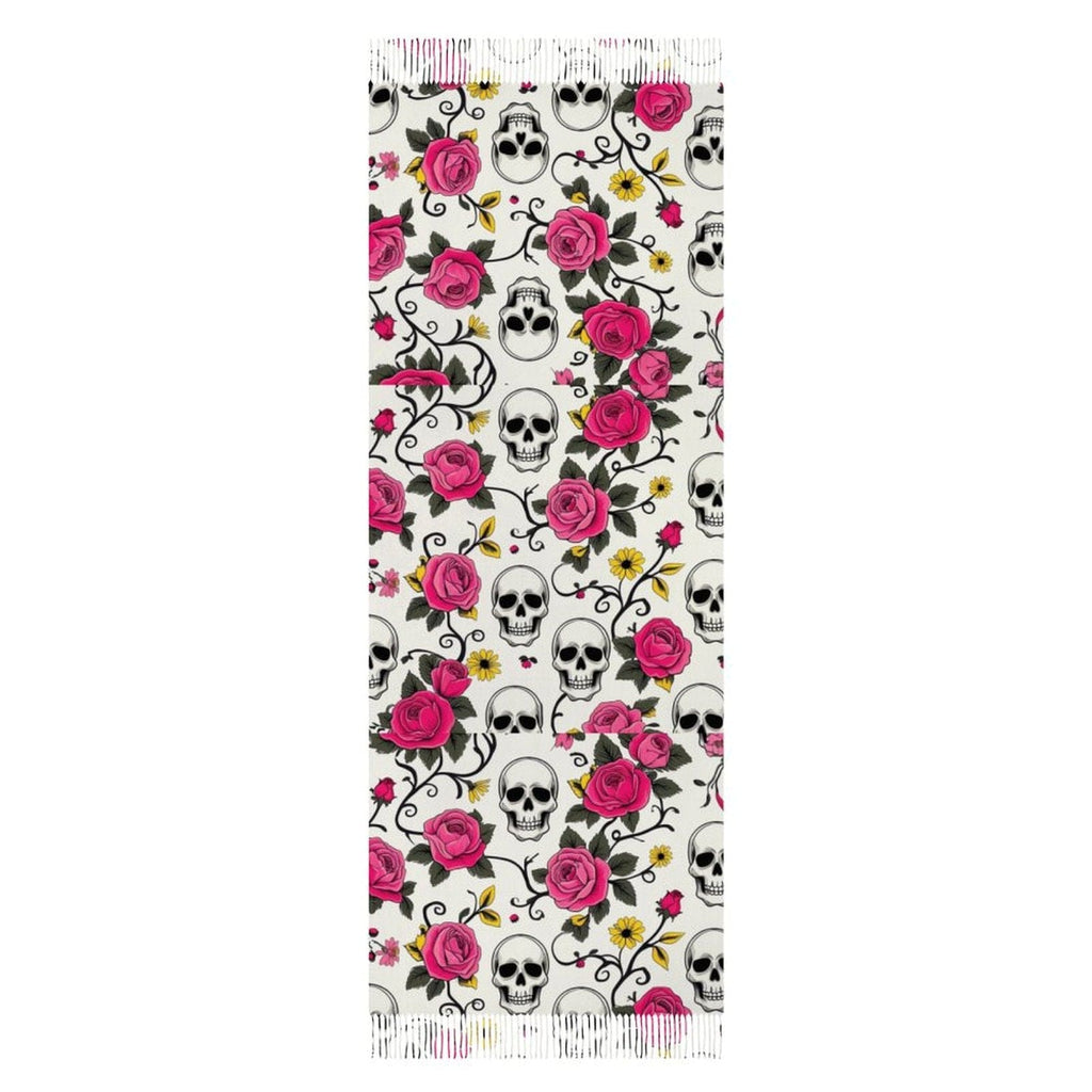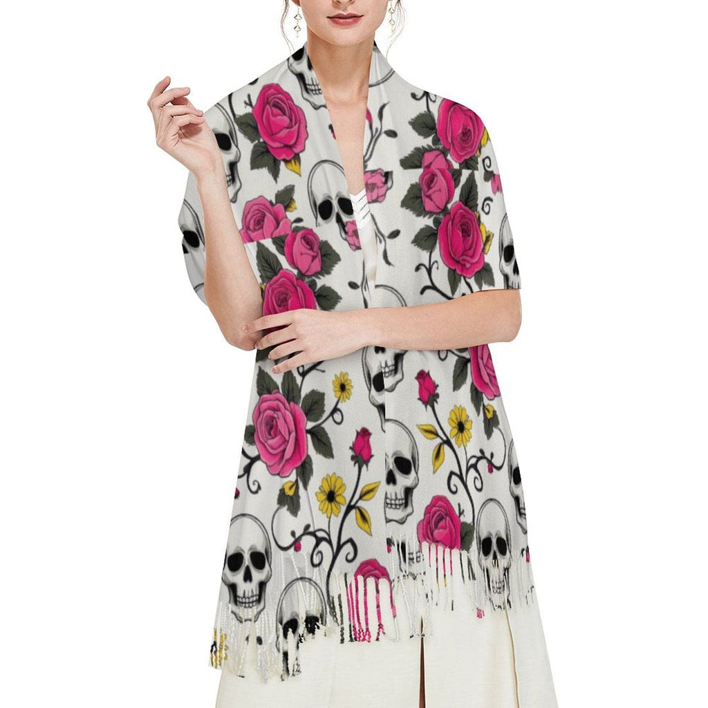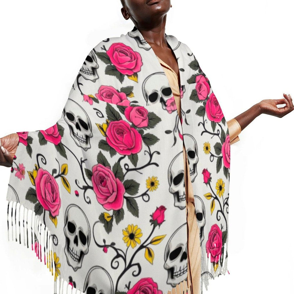 Skull Floral Vines Tassel Scarf