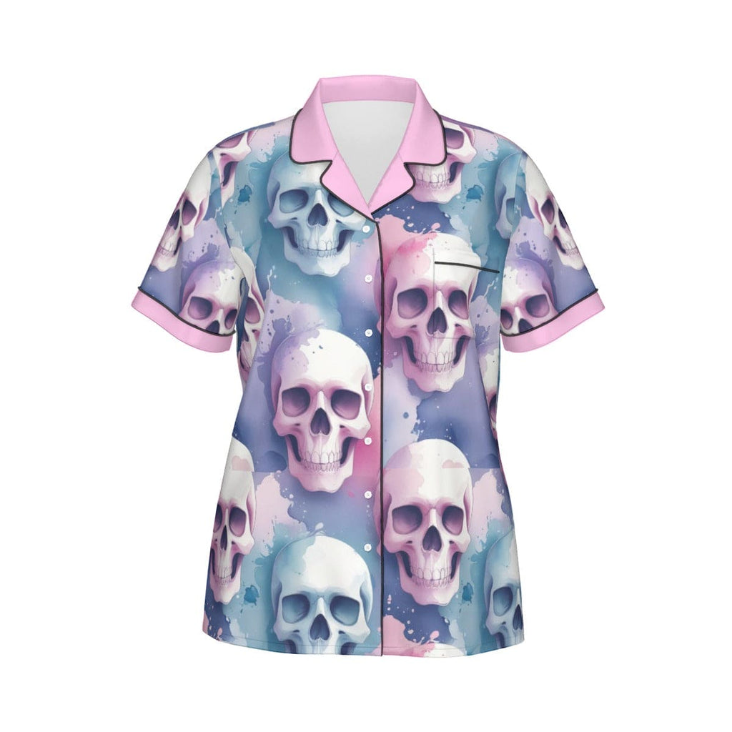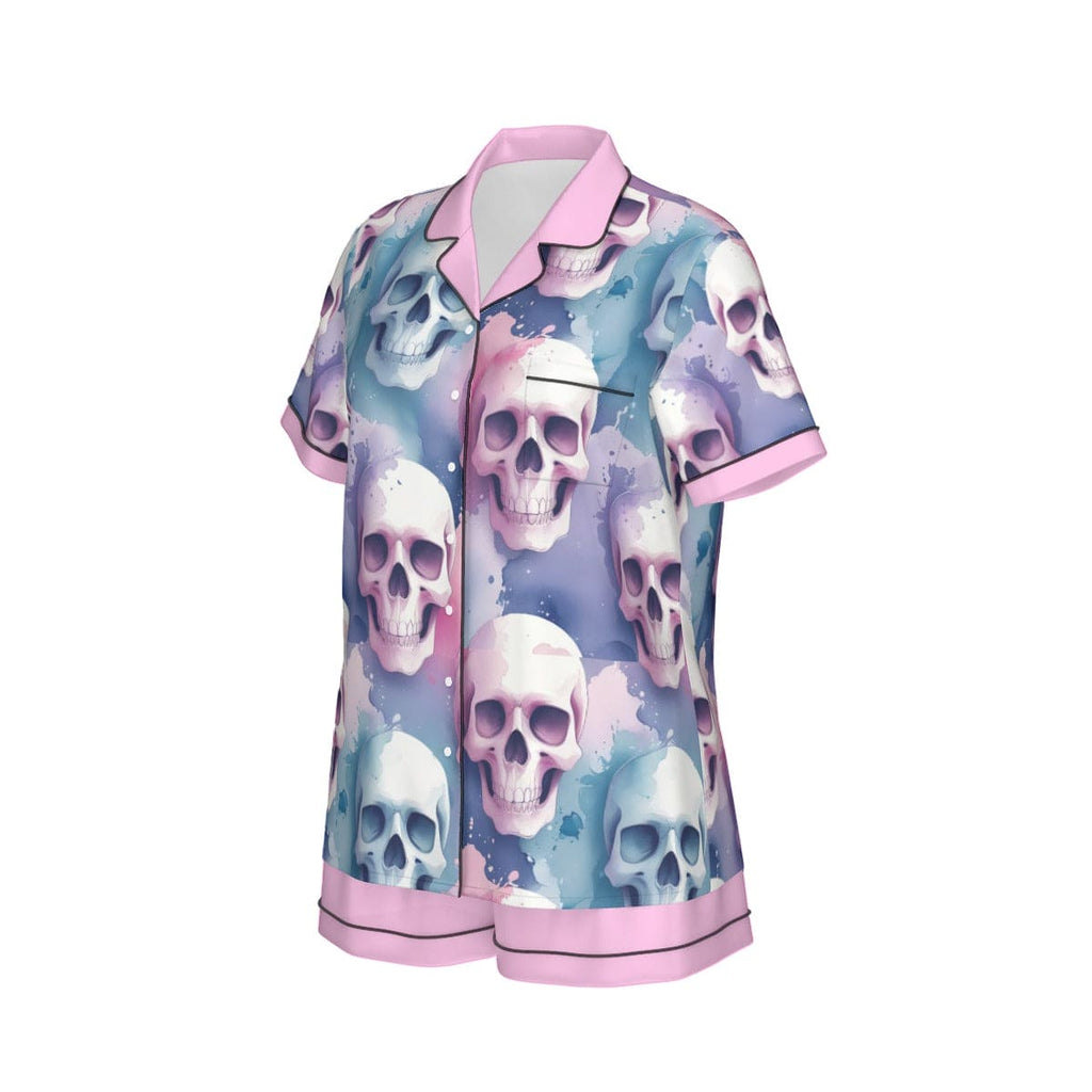 Women's Purple Blue Skulls With Short Sleeve Pajama Set