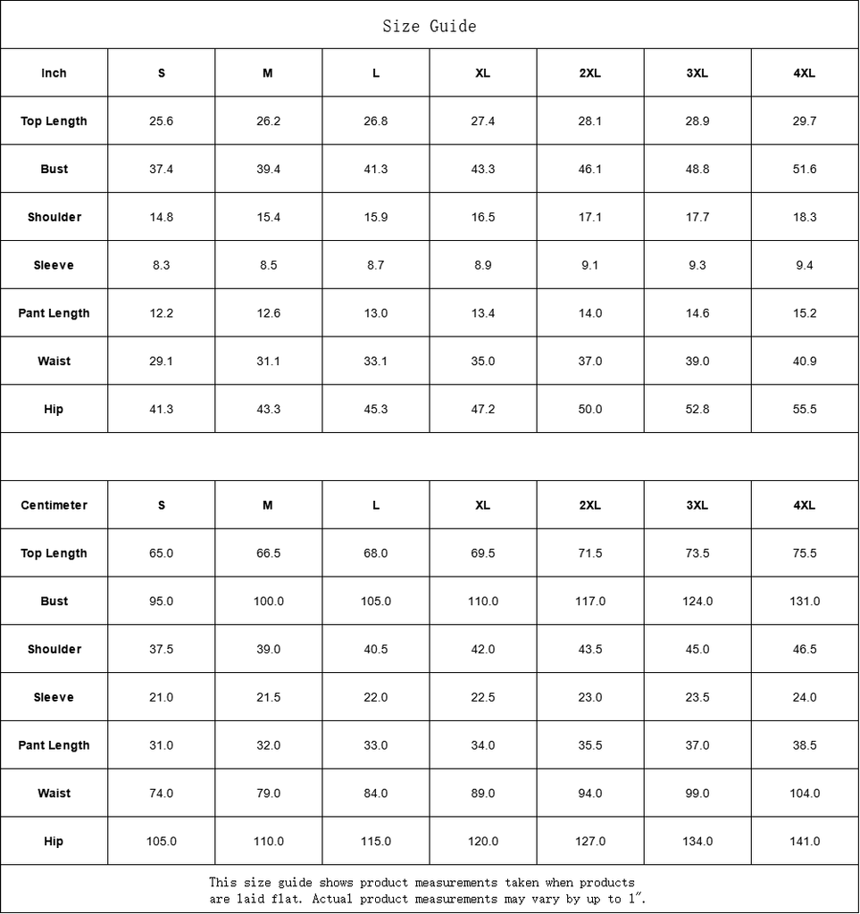 | Centimeter | S | M | L | XL | 2XL | 3XL | 4XL |