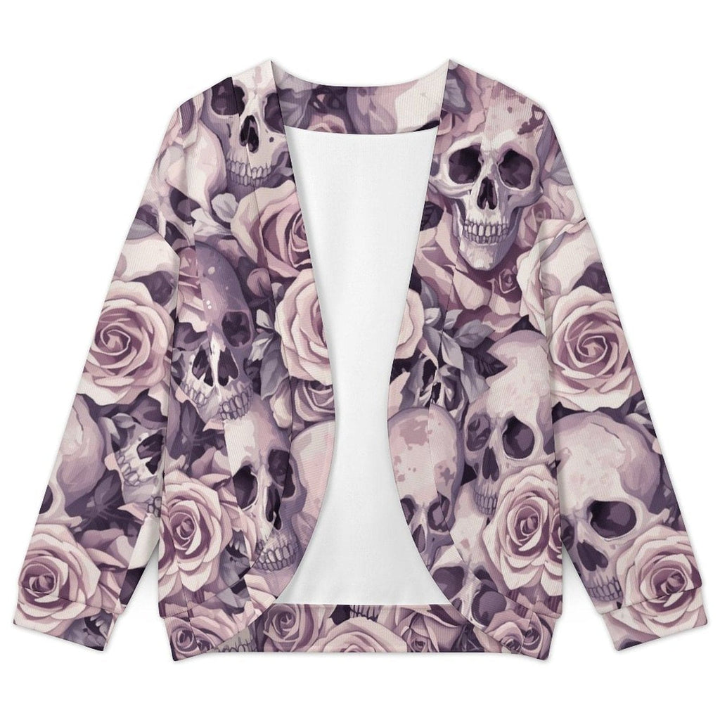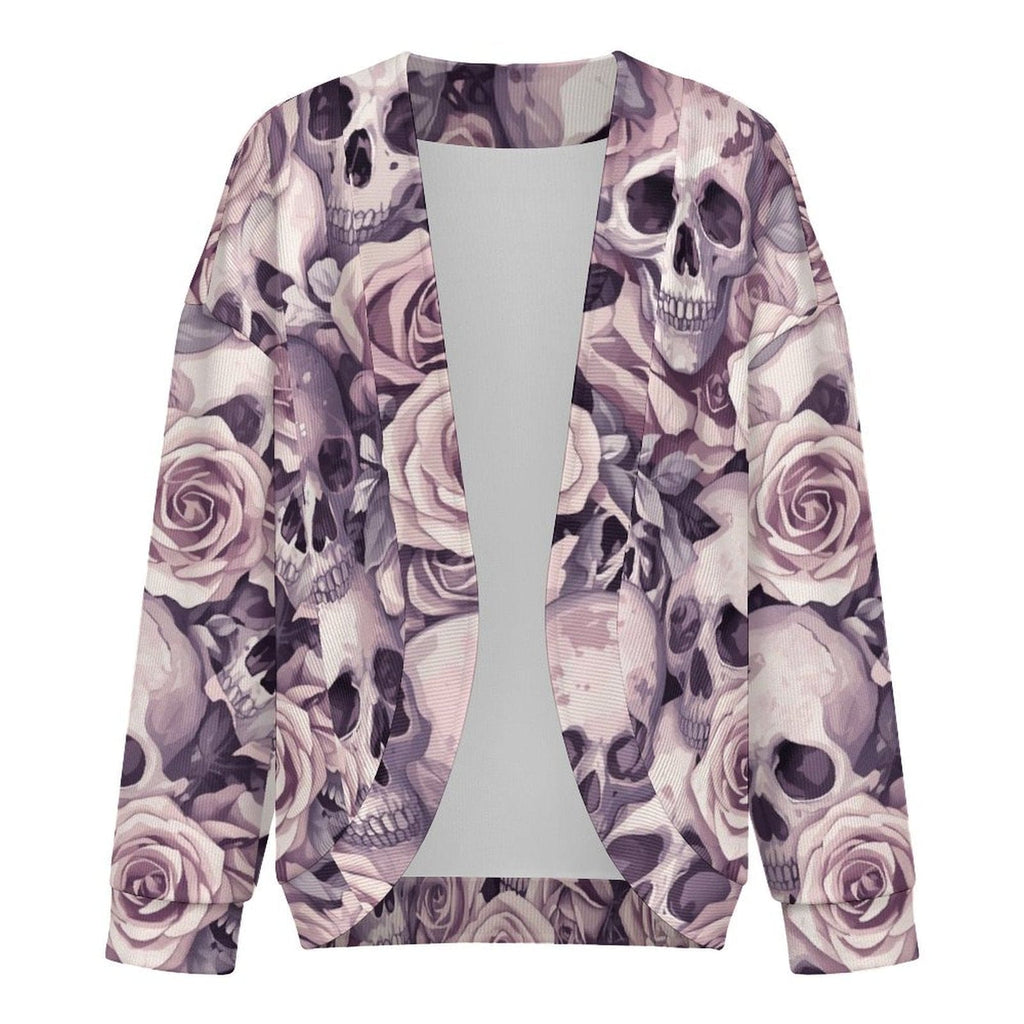 Women's Pink Skulls Floral Drop Shoulder Cardigan