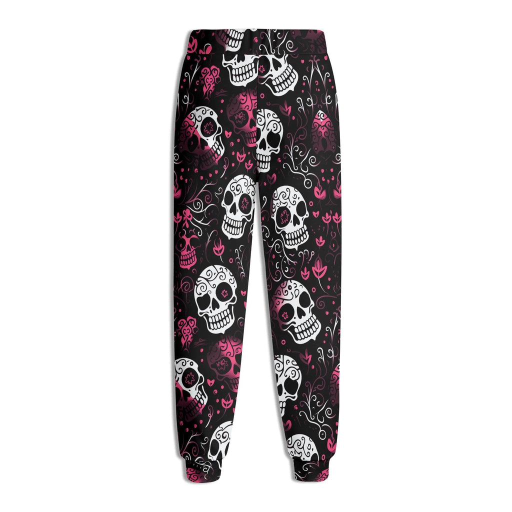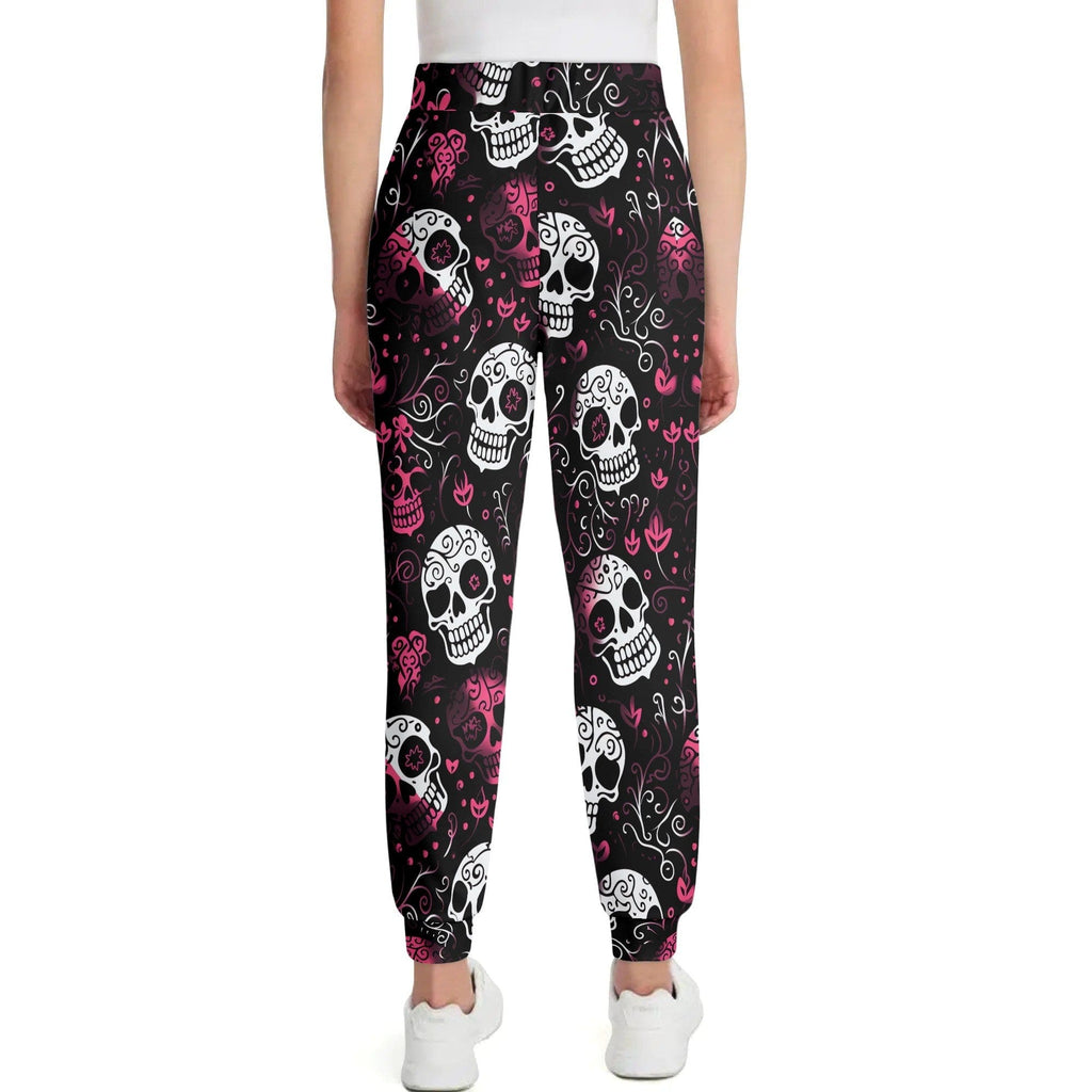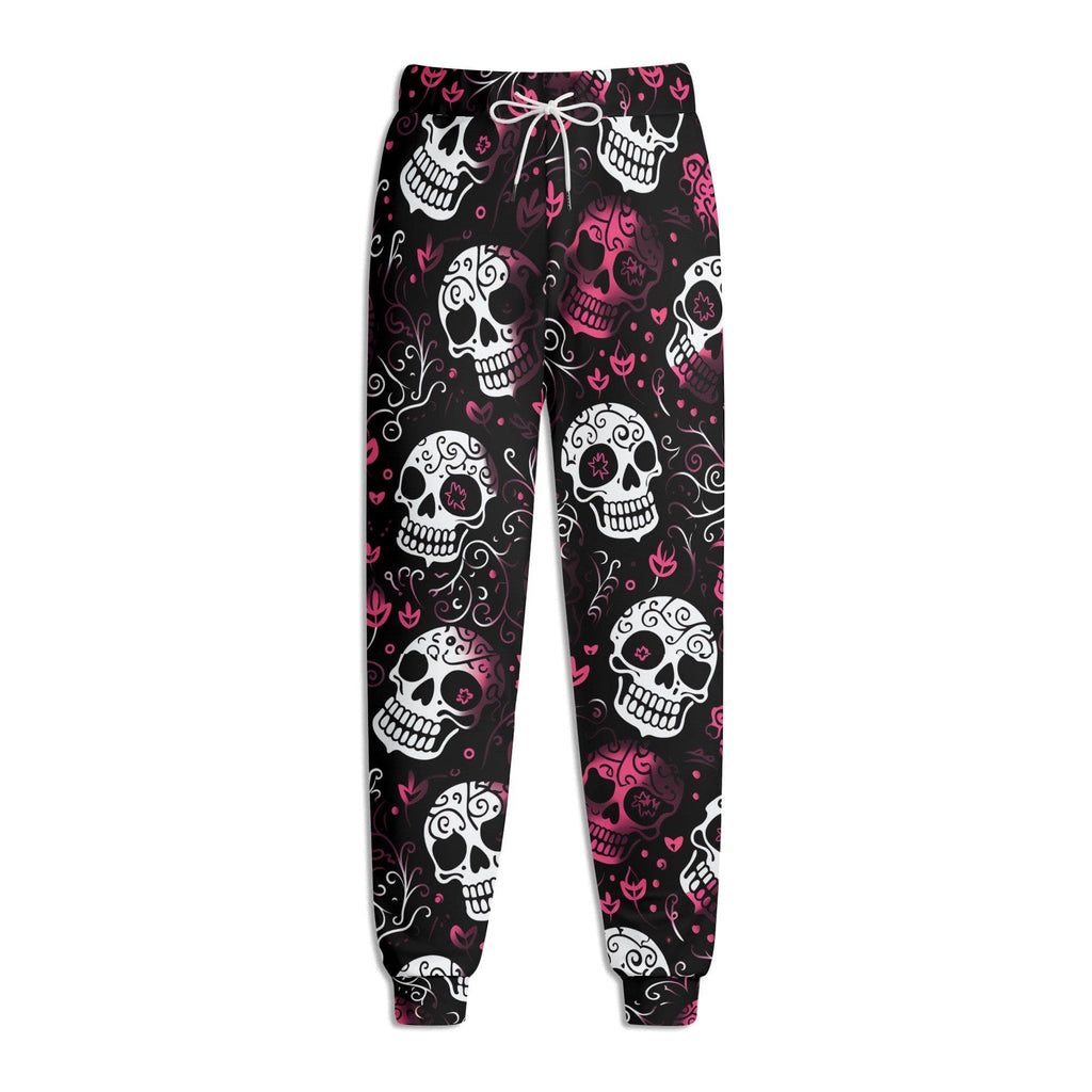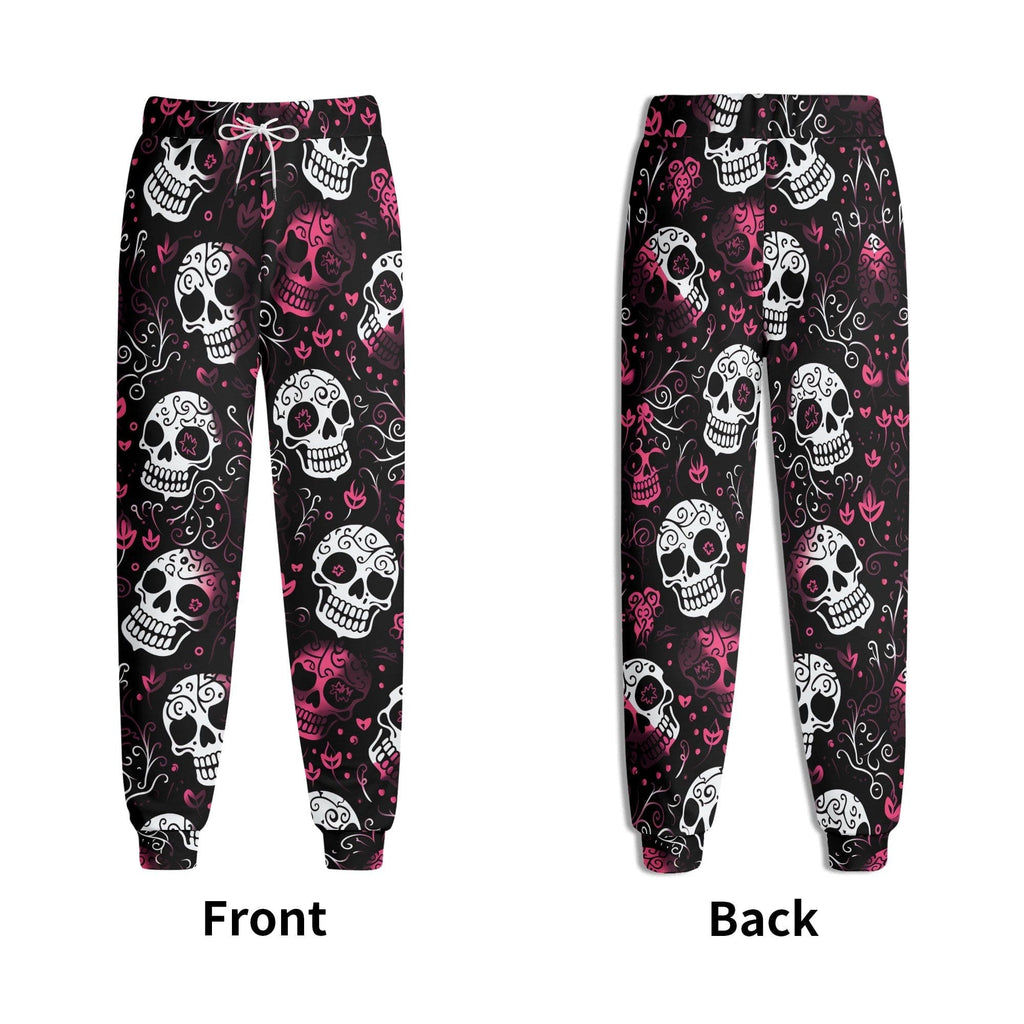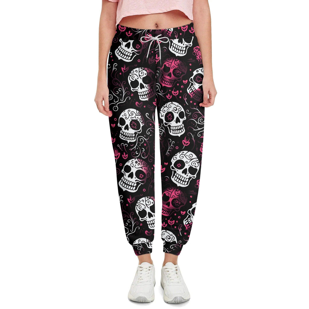 Women’s Pink Skull Floral Sweatpants – Gothic Lounge & Casual Wear