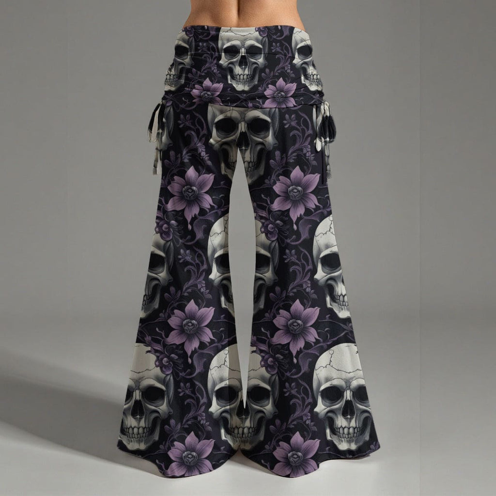 Women's Purple Floral Skulls High Waist Wide Leg Pants