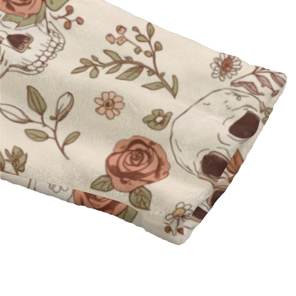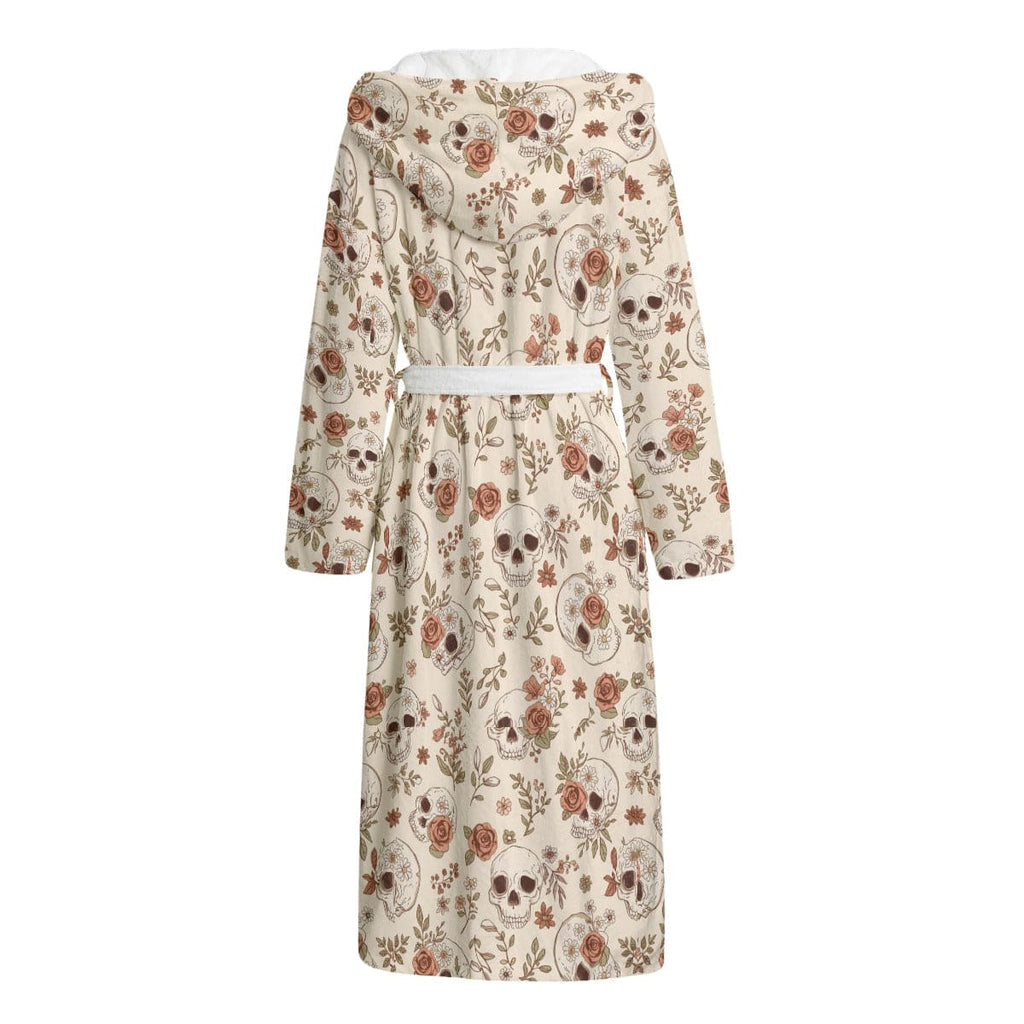 Women's Boho Skulls With Roses & Daisies Flannel Hooded Bathrobe