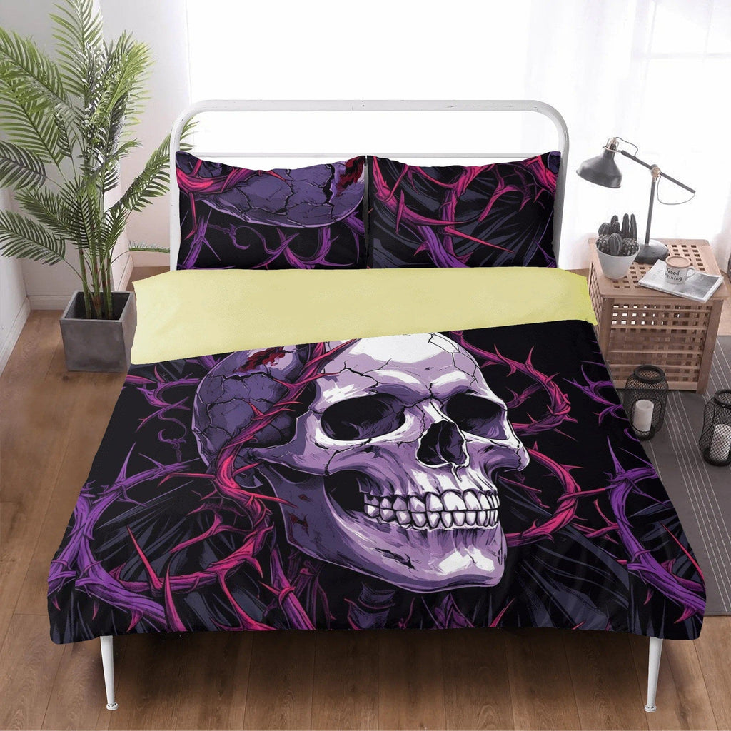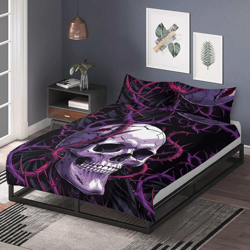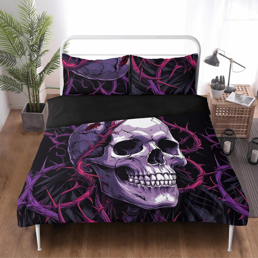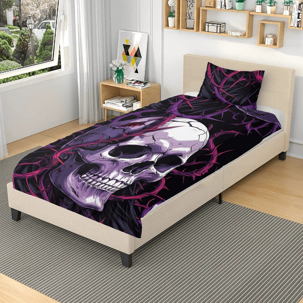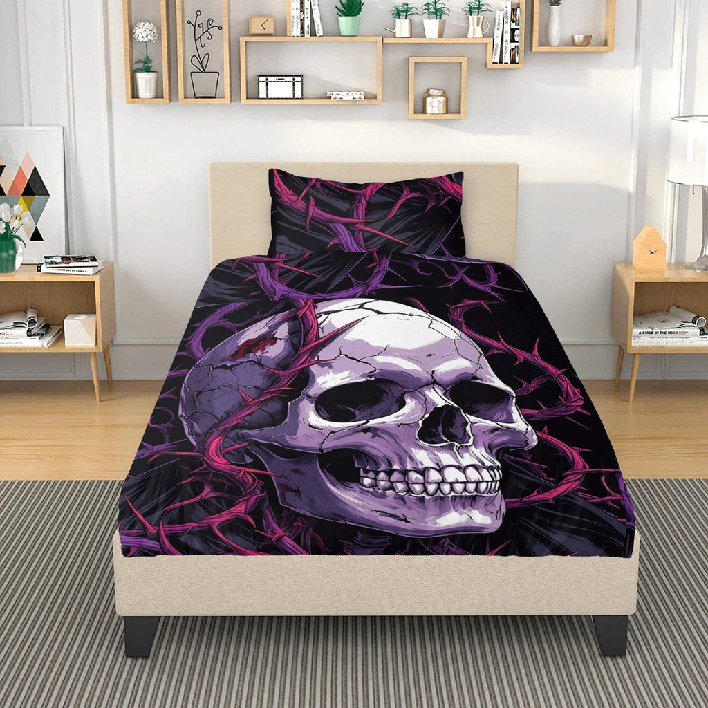 Skull With Pink & Blue Barb Wire 3 Pcs Bedding Set