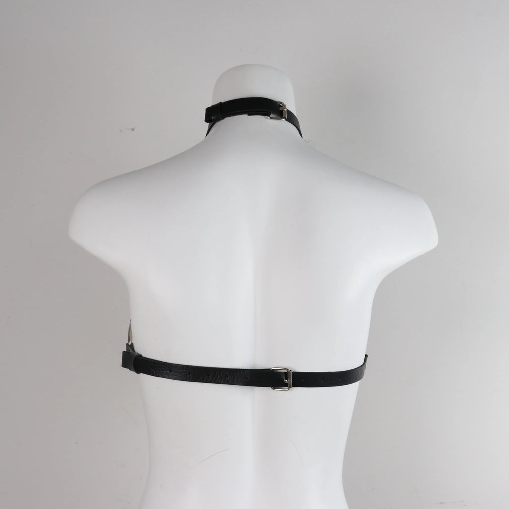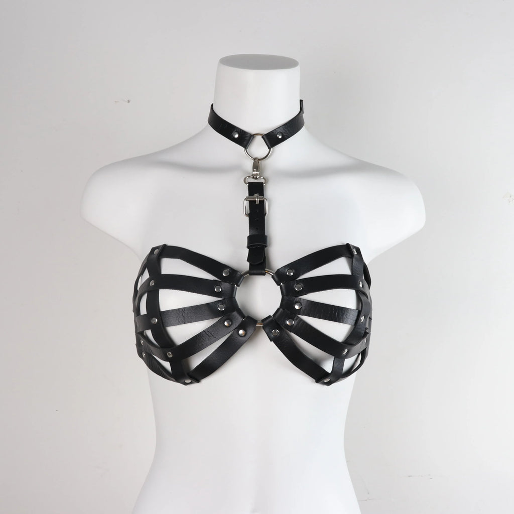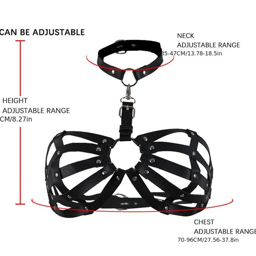 Made from synthetic leather and featuring a zinc alloy chain, this adjustable black cage bra inspired by Harajuku fashion ensures a comfortable fit for all sizes. Designed with brand-new, premium materials, it combines durability with eye-catching style. Add this distinctive and fashionable piece to your collection today.