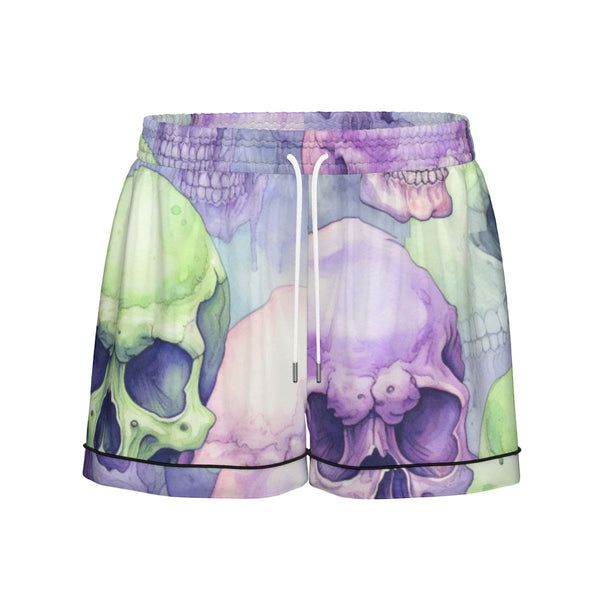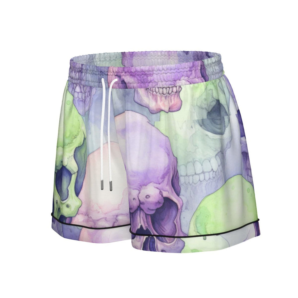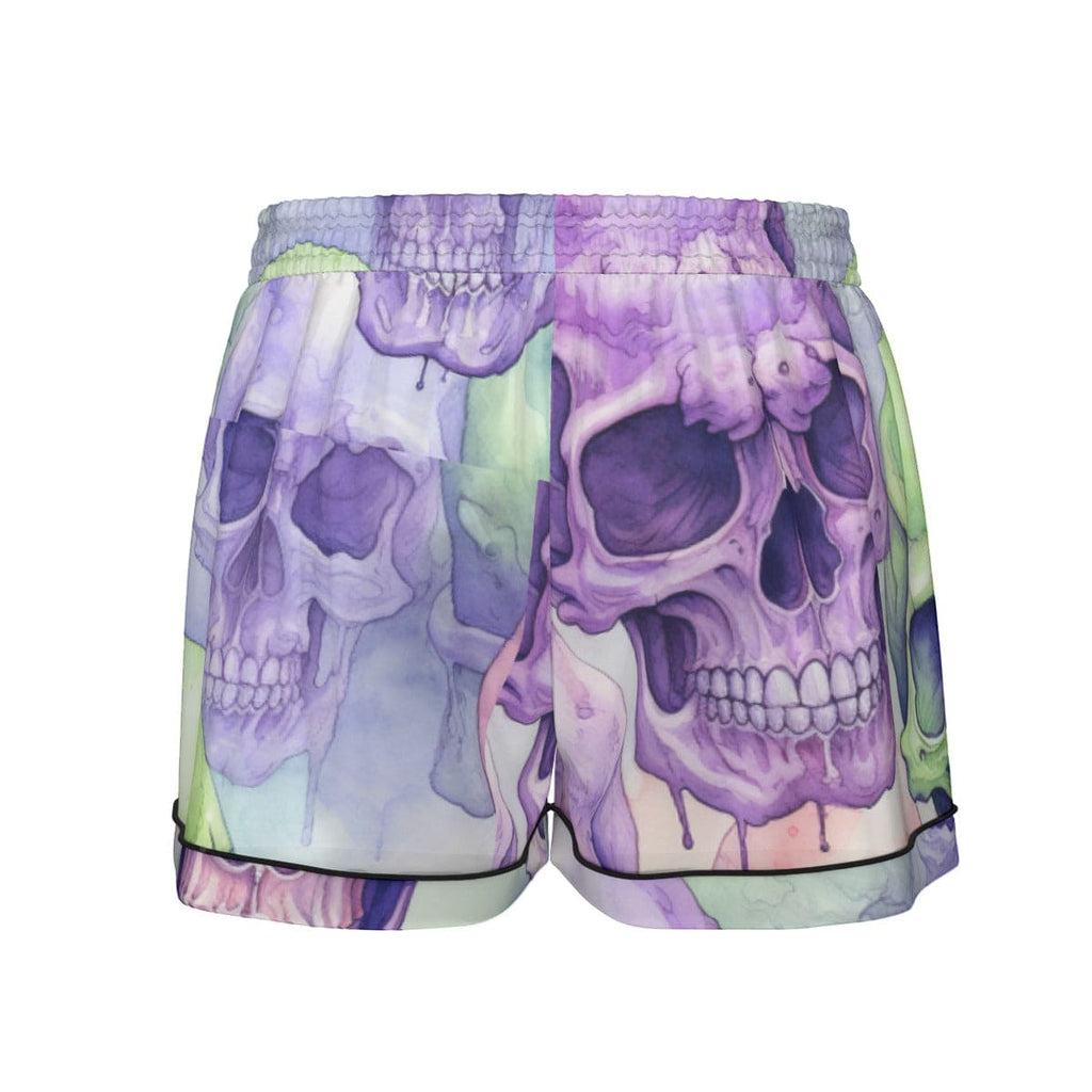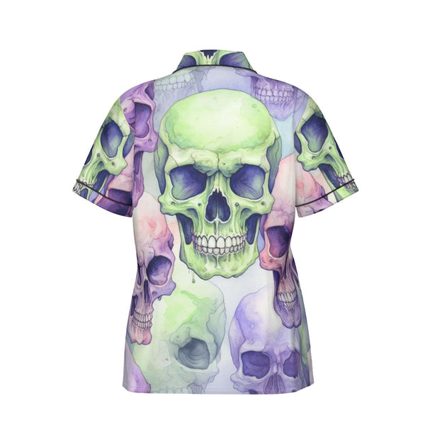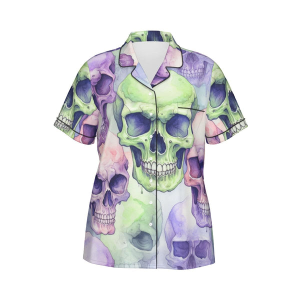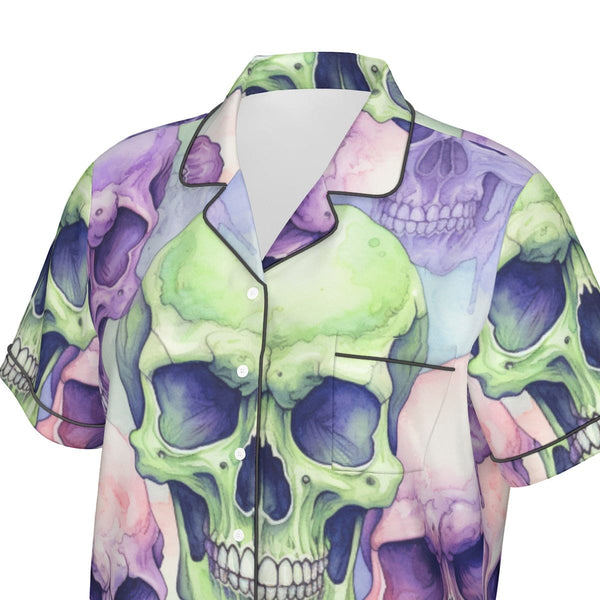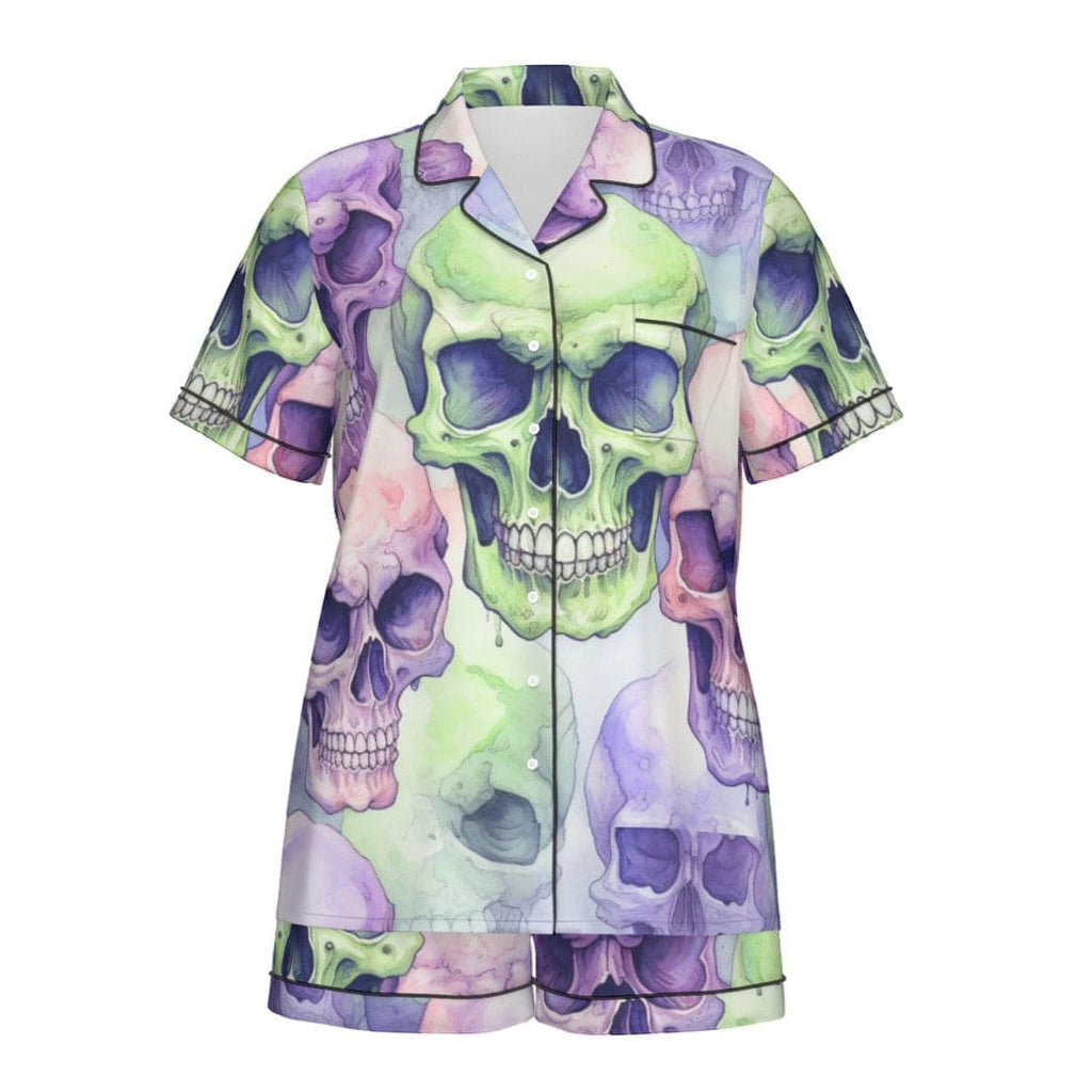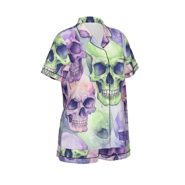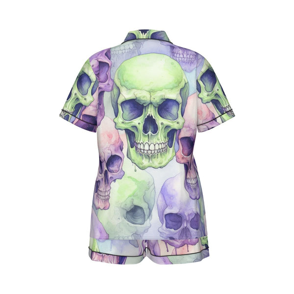Women's Purple Green Skulls Silk Pajama Set