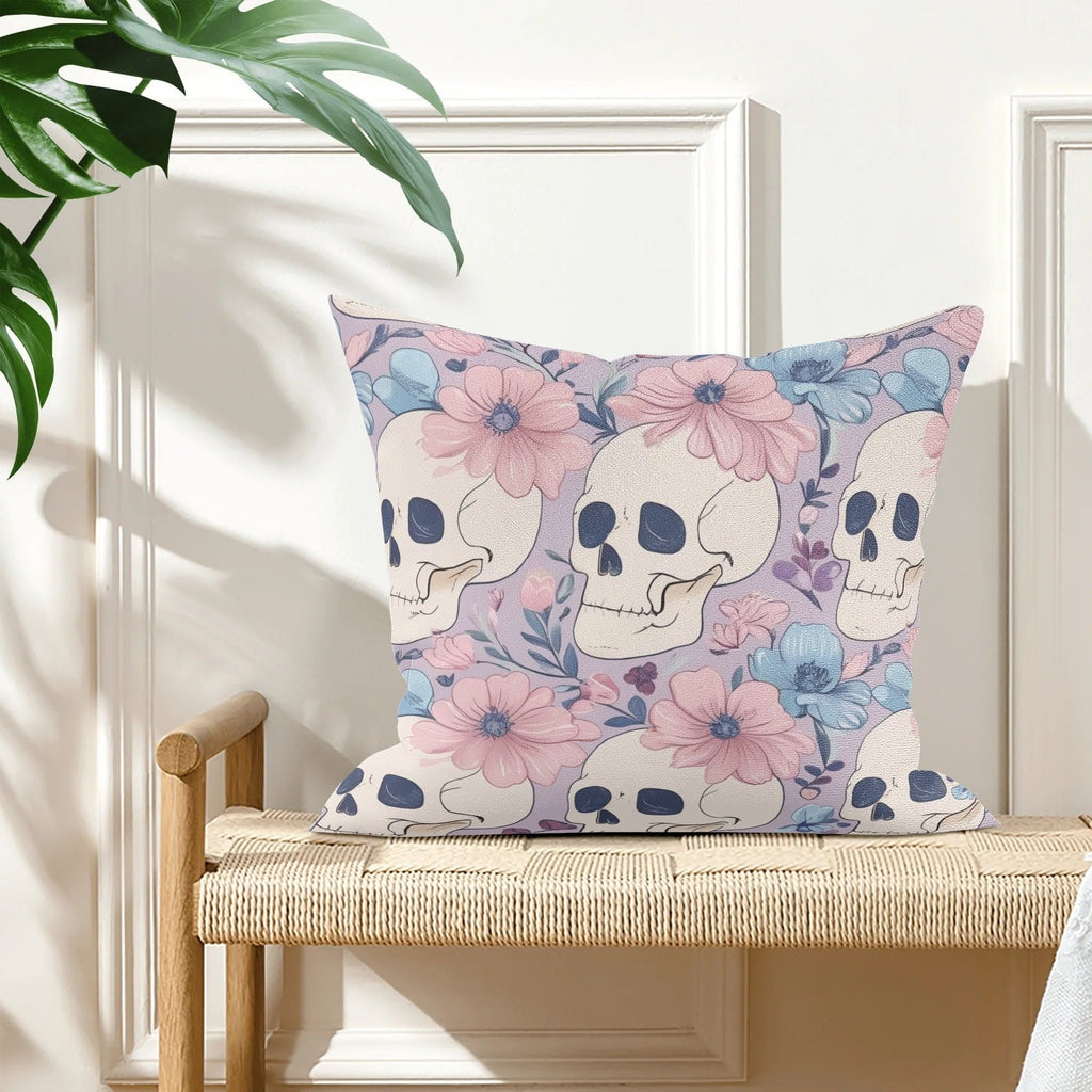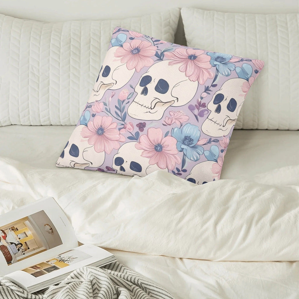 Pastel Skulls Floral Pillow Case Cushion Cover 5 Square Sizes