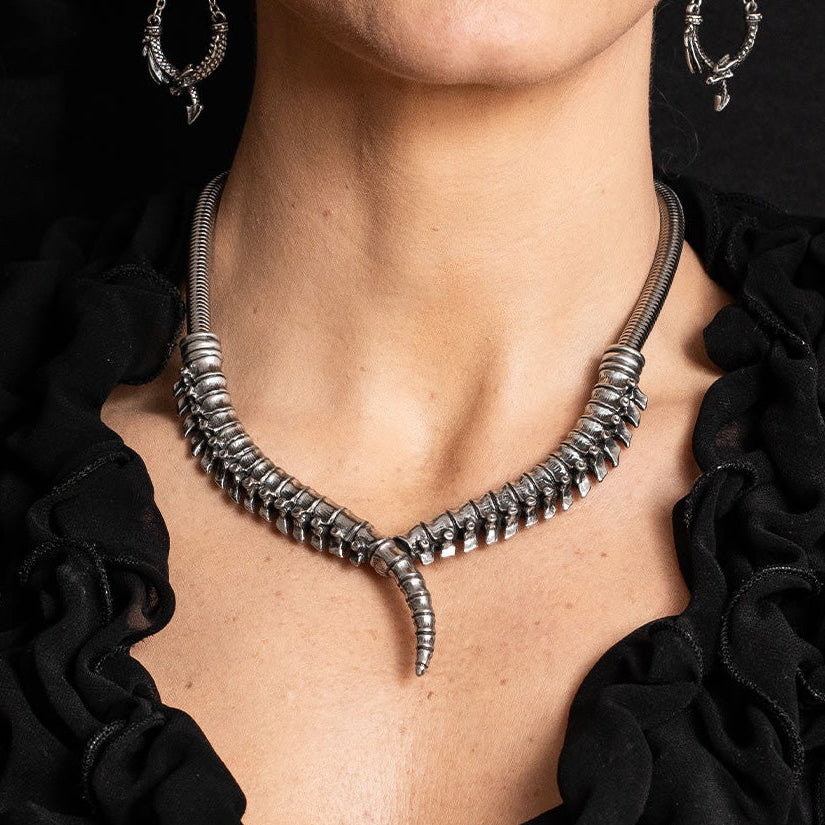 Perfect for alternative fashion lovers, collectors, and anyone who embraces edgy, unconventional design, this thoracic collar necklace transforms any outfit into a powerful visual statement. Whether worn for events, photoshoots, or layered into everyday gothic wear, it delivers unforgettable impact.