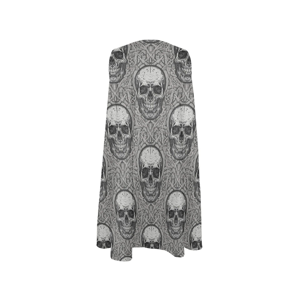 Women's Gray Skulls Design Sleeveless A-Line Pocket Dress