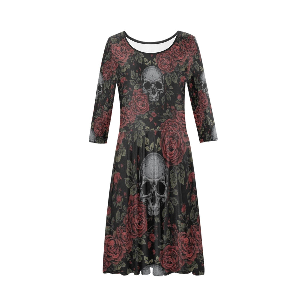 Women's Skulls & Red Roses Half-Sleeve Dress
