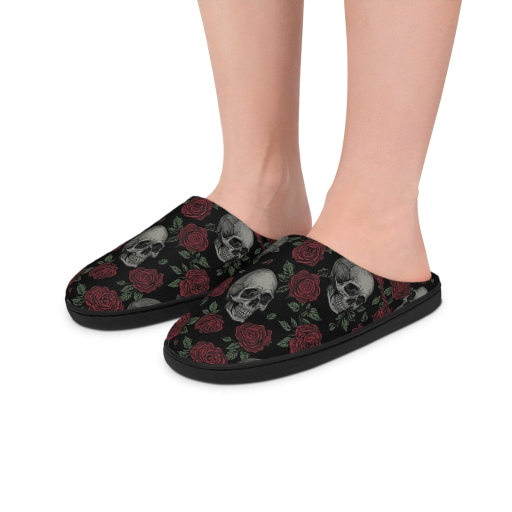 Skull & Rose Women's Indoor Slippers — Gothic Floral Cozy