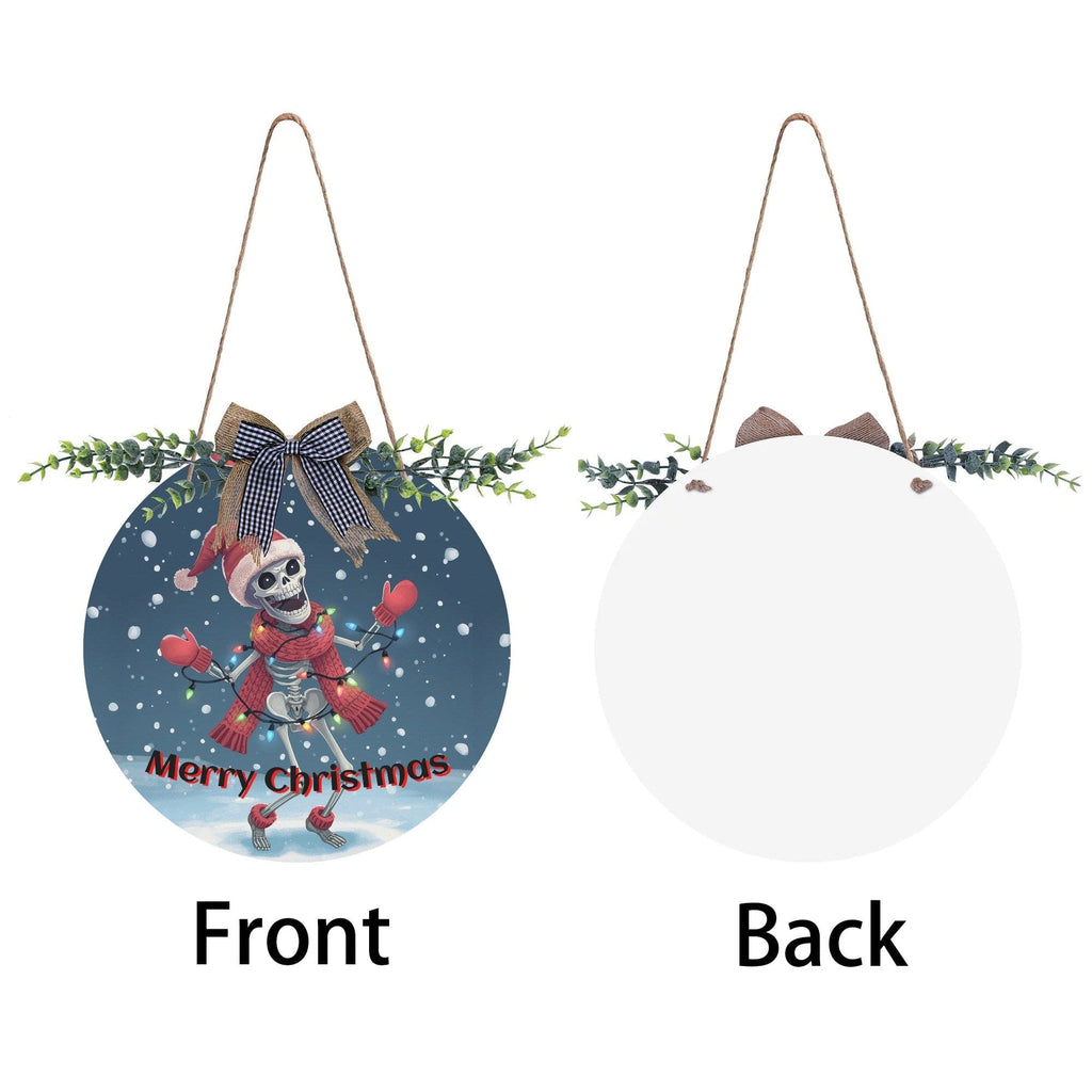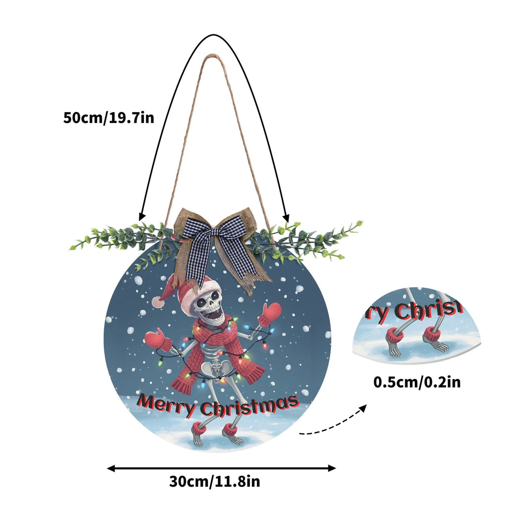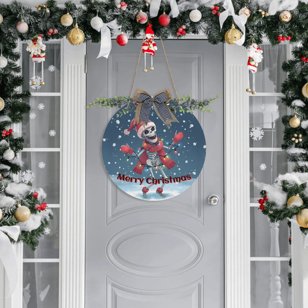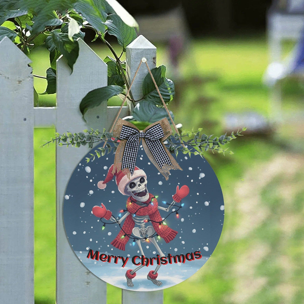 Merry Christmas Skull Holding Lights Round Acrylic Welcome Sign for Door Decoration