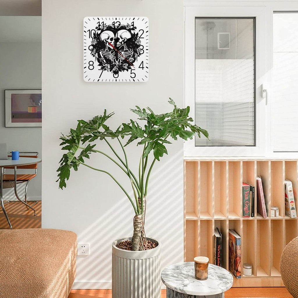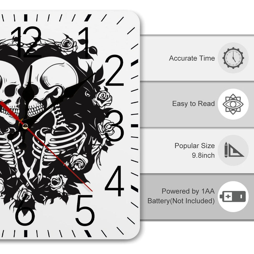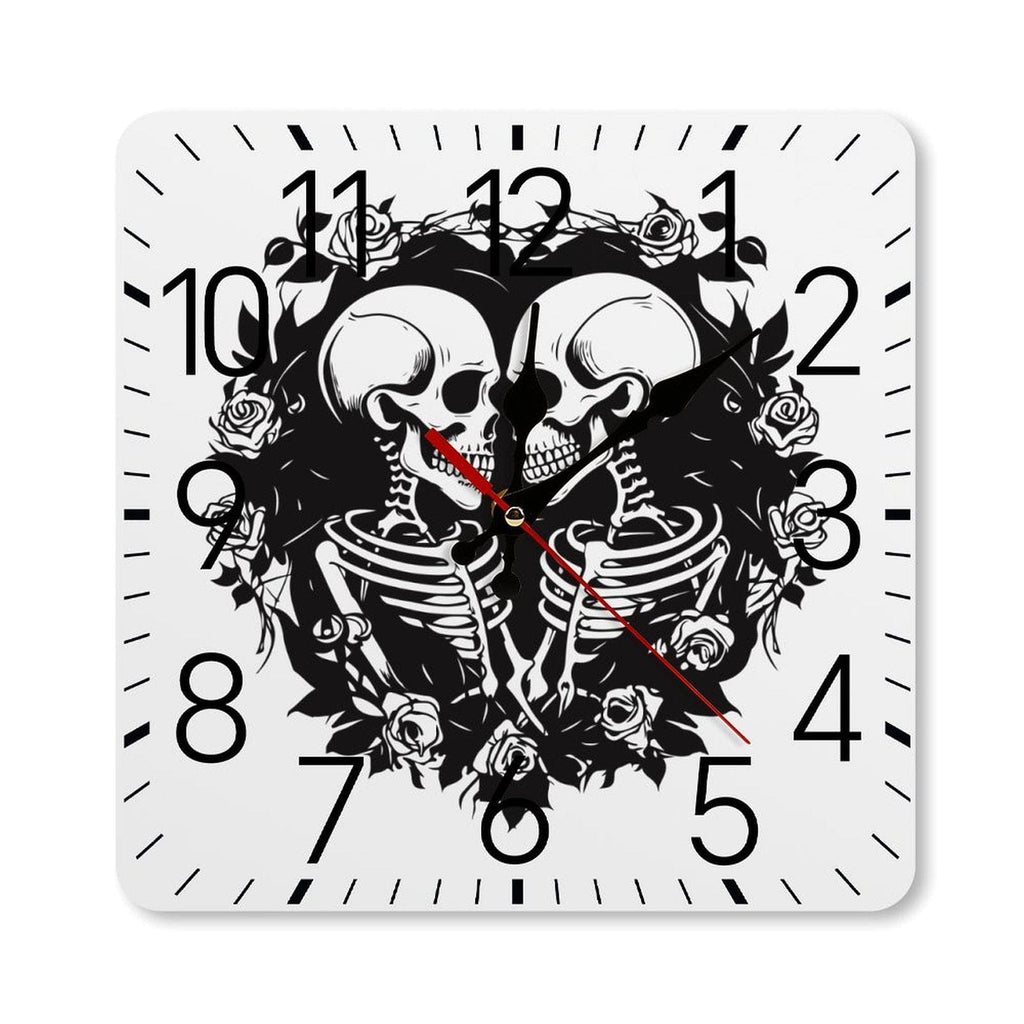 Two Skulls Square Wall Clock With Numbers