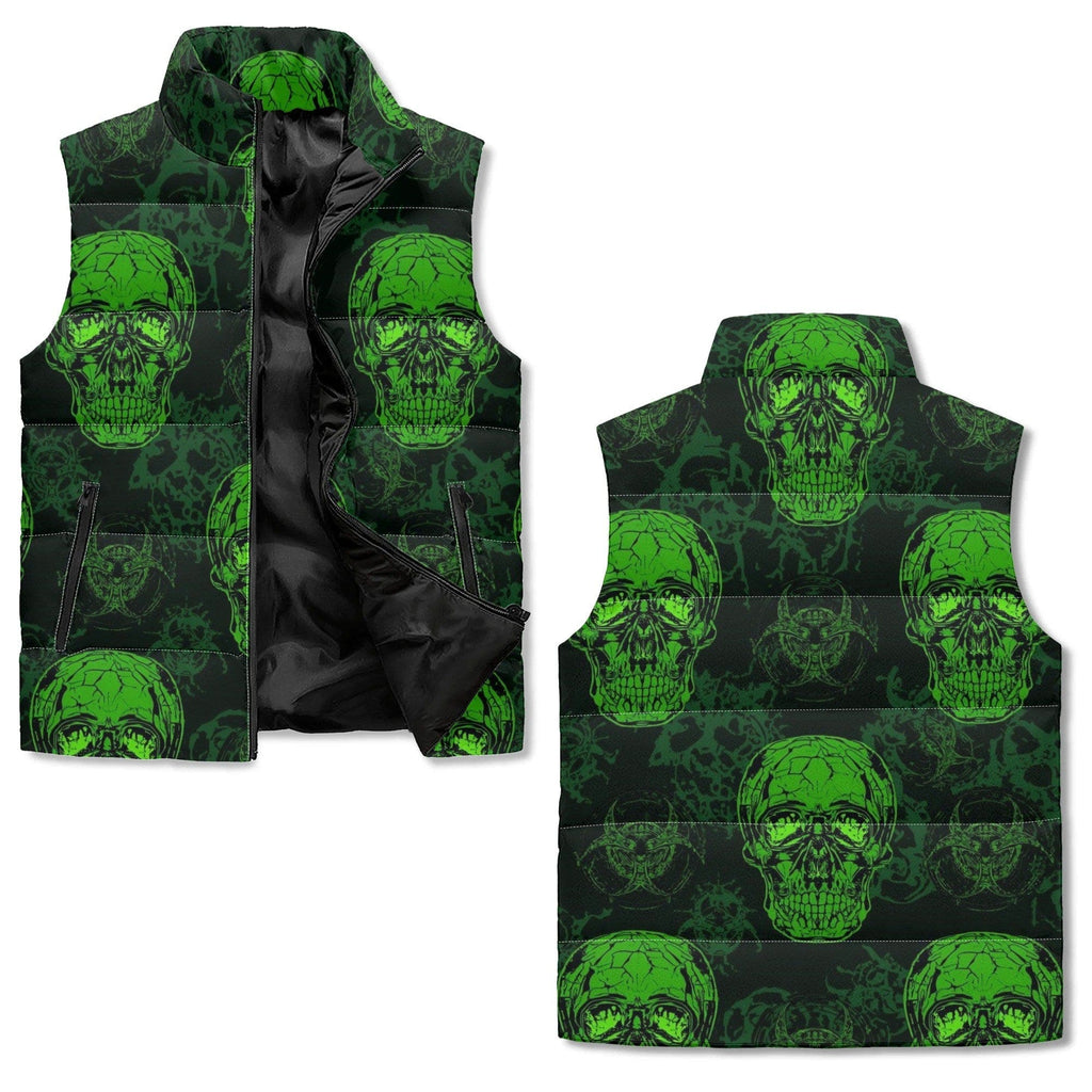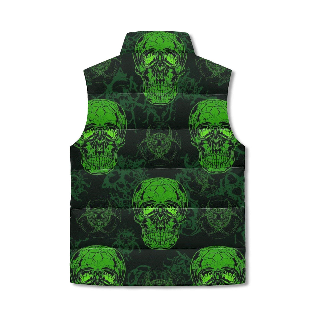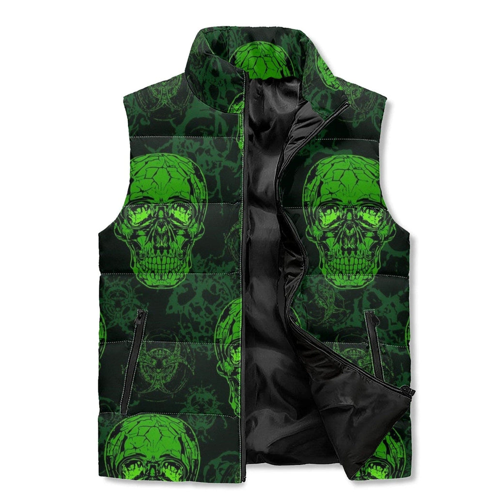 Green Skulls Lightweight Stand Collar Zip Up Puffer Vest