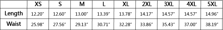 Note: The waistline in the size chart below is twice the length of the waist from left to right measured on flat clothes.