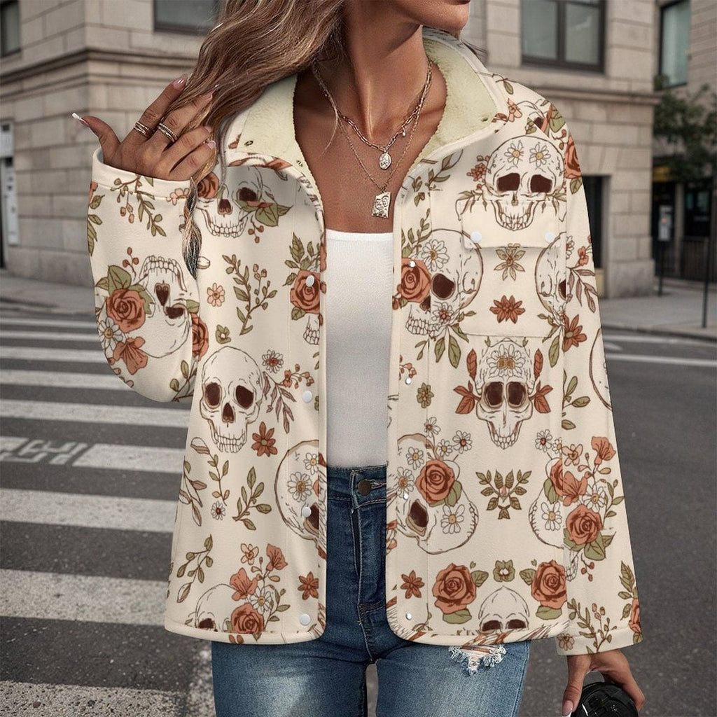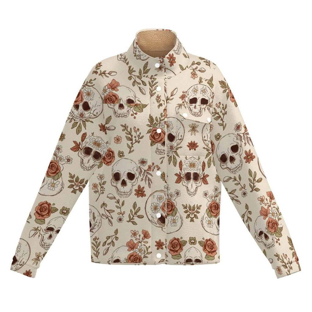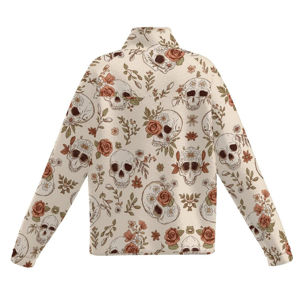 Women's Boho Skulls With Roses & Dasies Stand Collar Fleece Jacket