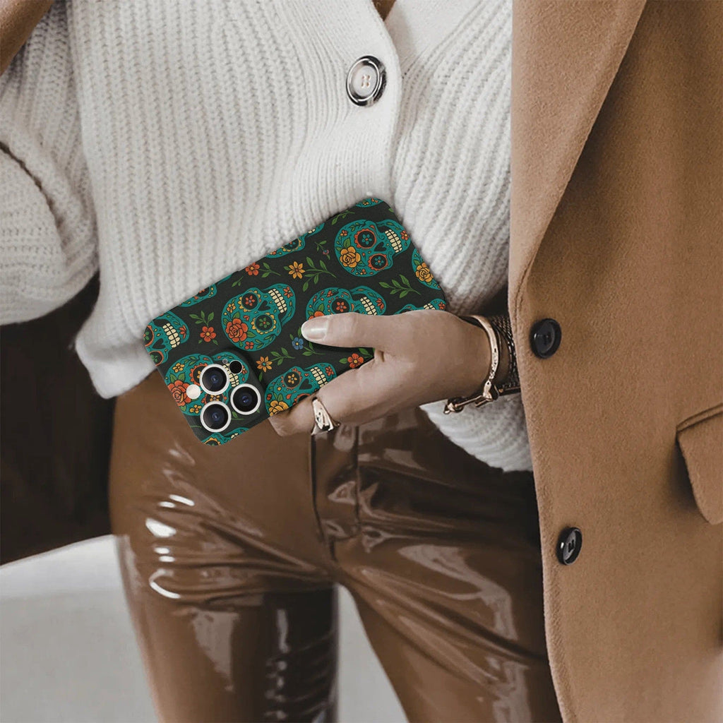 Colorful Skulls iPhone 15 Pro Max Case, Gothic Punk Phone Cover