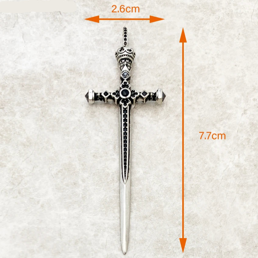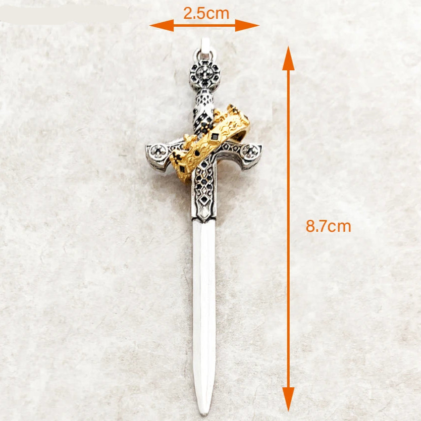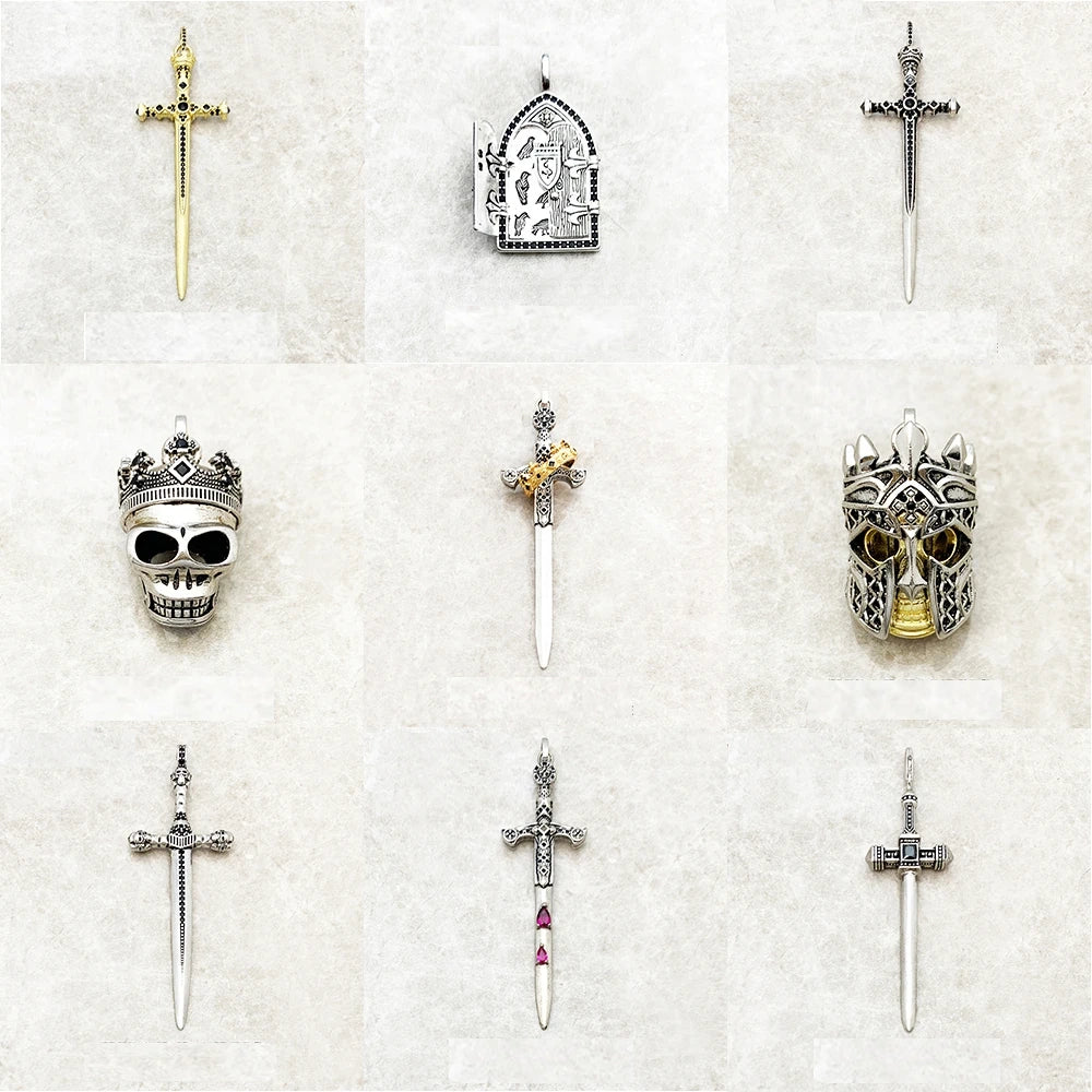 Sword With Crown Skull Knight Sterling Silver Pendants For Necklaces