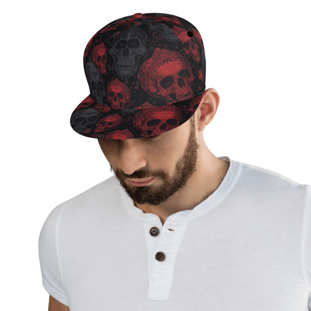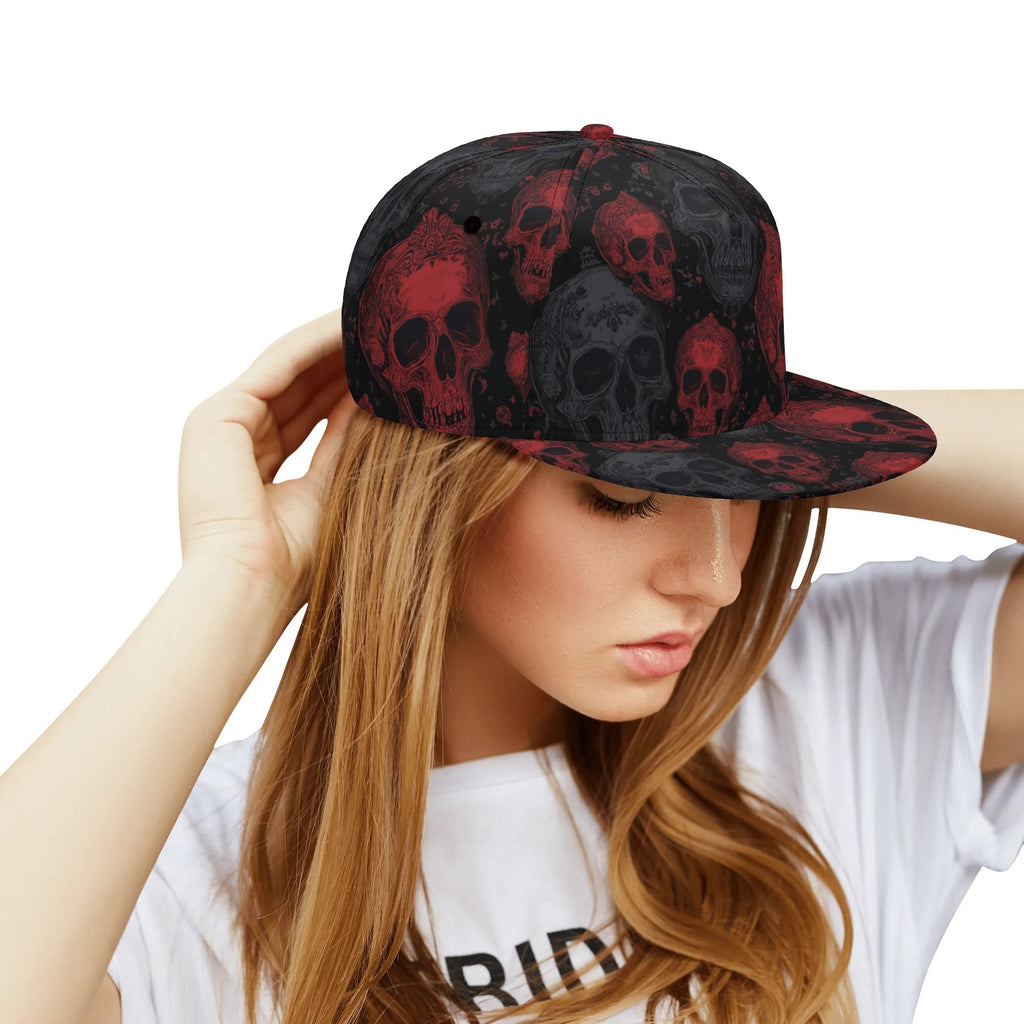 Red & Gray Skulls Classic Snapback Hat For Men And Women