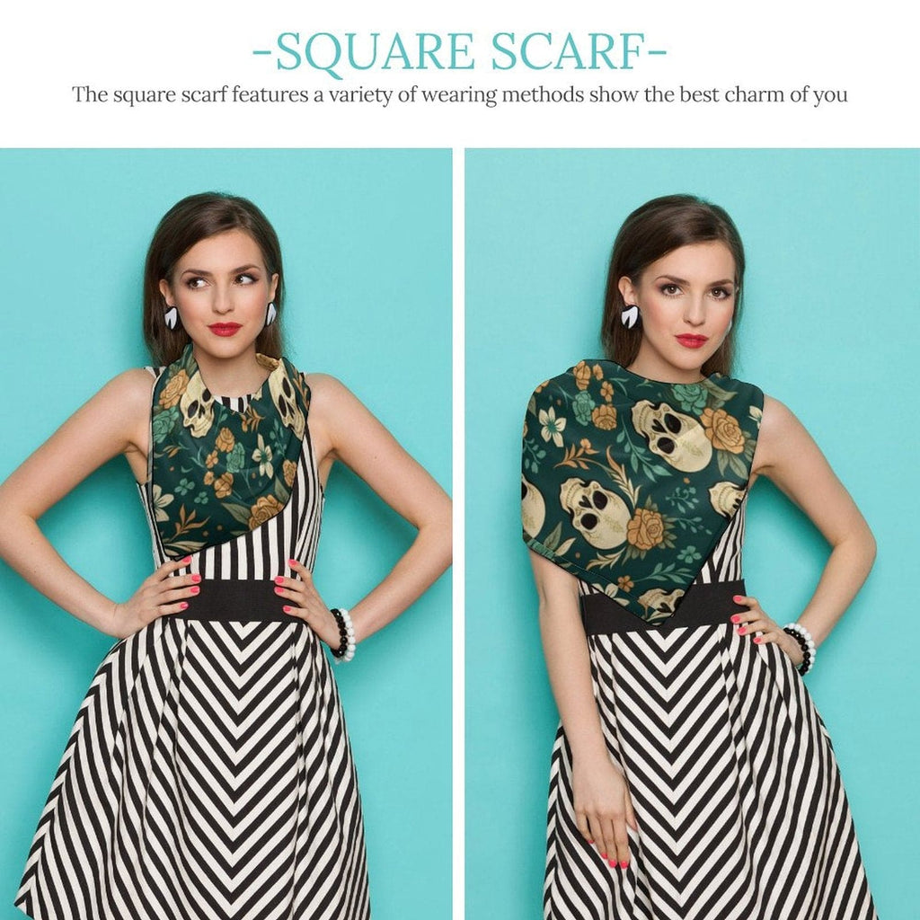 Wrap yourself in tropical elegance with this lightweight silk scarf, expertly crafted from a premium 95% polyester and 5% spandex blend that feels luxuriously soft against your skin. Weighing just 4.06 oz, it's the perfect accessory for effortless style. Precision hemming ensures every edge is flawless with no loose threads or imperfections. The versatile design lets you express your creativity—wear it as a chic headwrap, wrist accessory, playful bunny ears style, or even as a bag embellishment. Comfortable, durable, and endlessly adaptable, this scarf transforms any outfit with botanical skull artistry.