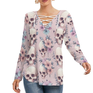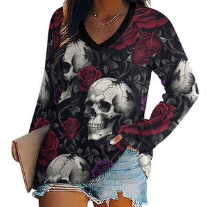 Women's Orange Flowers Skulls Long Sleeve Loose Top