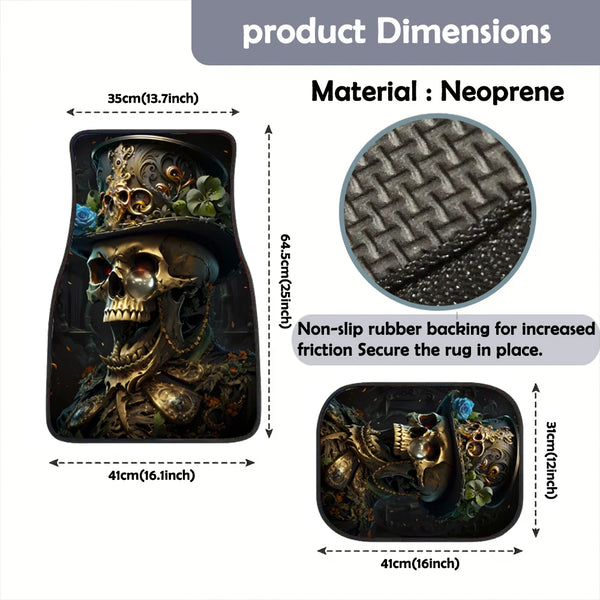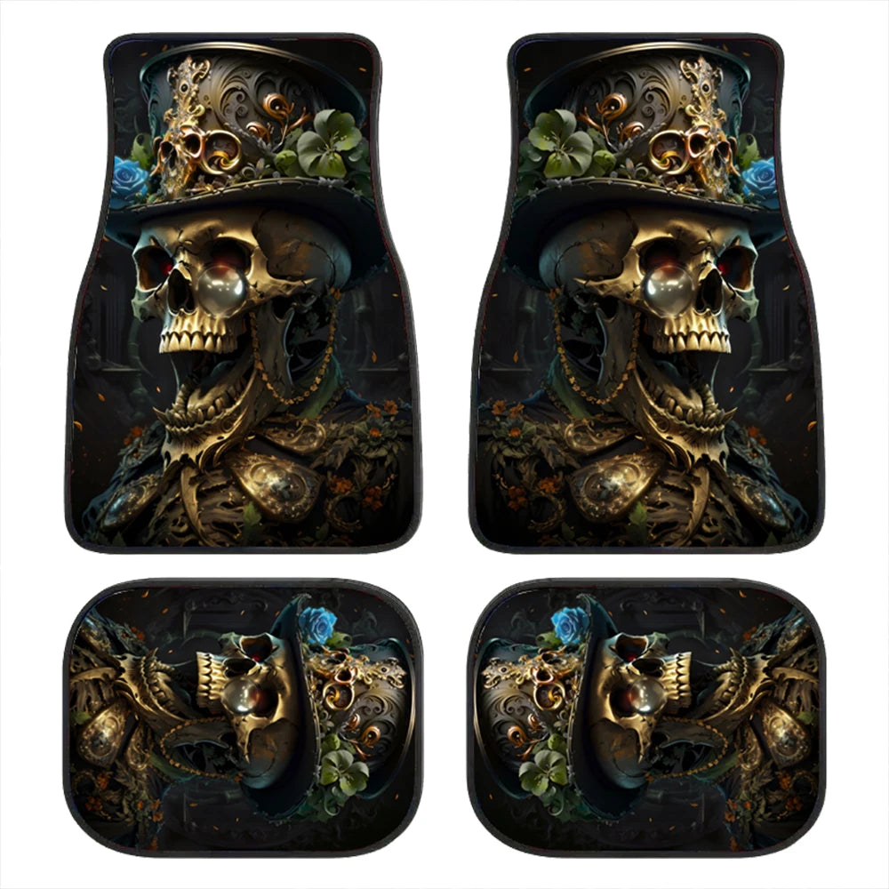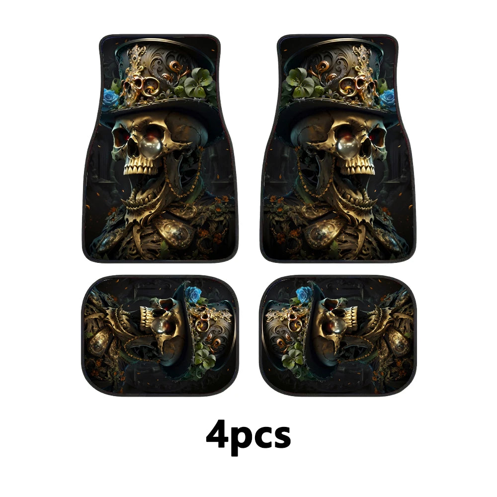 2or 4PCS Gentleman Skull Pattern Car Floor Mats Water-absorbent Anti-slip