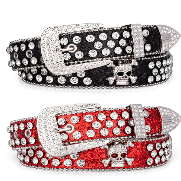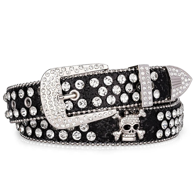 Black Rhinestone Belt With Sparkly Diamond Skull