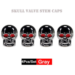 Gray Skull Red Eyes 4Pcs/Set Universal Stem Valve Caps, Attractive Dustproof Car Accessories