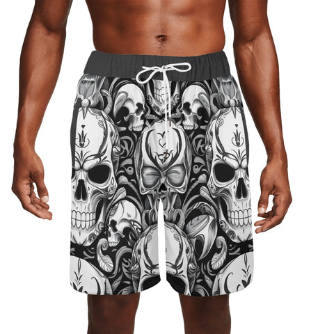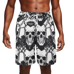 Men's Black White Skull Crossbones Swim Trunks