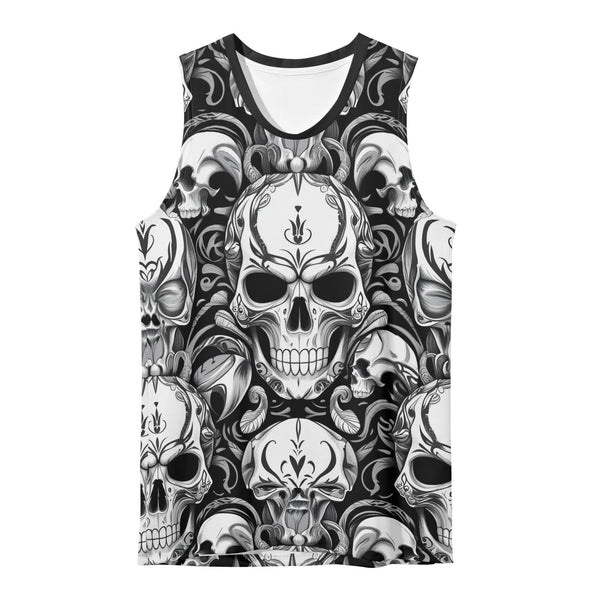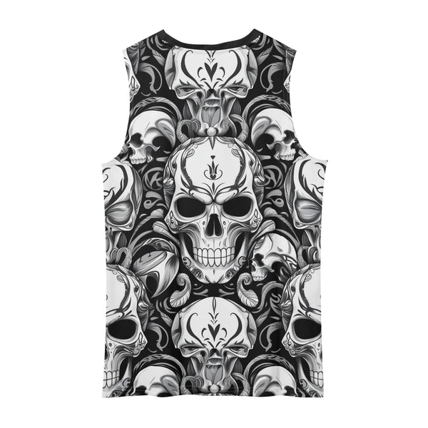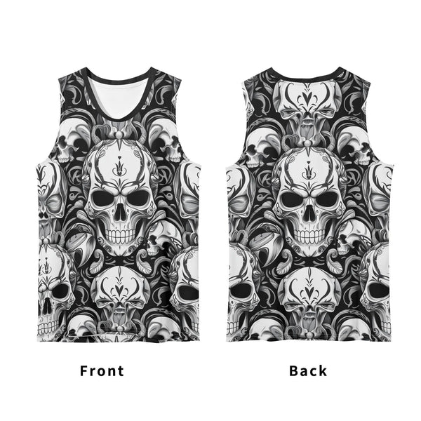 Mens Black & White Skulls Loose Fit Sleeveless Tank Top