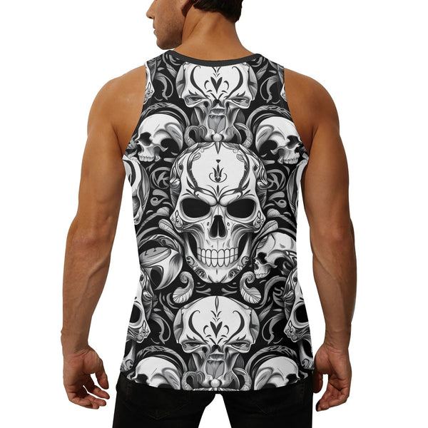 Men's Black & White Skulls Loose Fit Sleeveless Tank Top