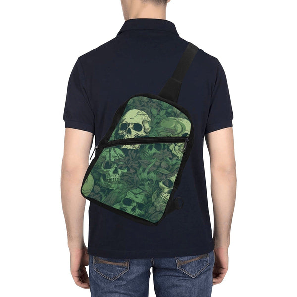 Crafted from durable 1200D nylon, this eco-conscious Green Skulls Chest Bag delivers versatility for your active lifestyle. Perfect for hiking, running, or daily adventures, it offers comfortable wear as either a shoulder bag or cross-body pack. The mesh-foamed strap and back panel ensure all-day comfort, while multiple pockets—one front utility and three smaller compartments—keep essentials organized. The adjustable strap guarantees a personalized fit for any adventure.