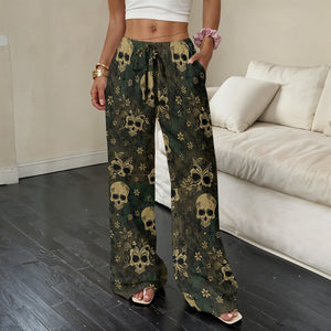Pink Roses & Skulls Baggy Suspender Jumpsuit With Bow Knot Shoulder Strap