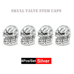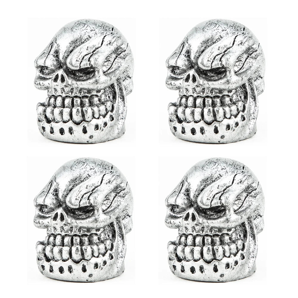 Silver Skulls 4Pcs/Set Universal Stem Valve Caps, Attractive Dustproof Car Accessories