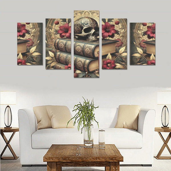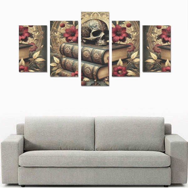 Skull red Floral Books Canvas Wall Art Prints No Frame 5-Pieces