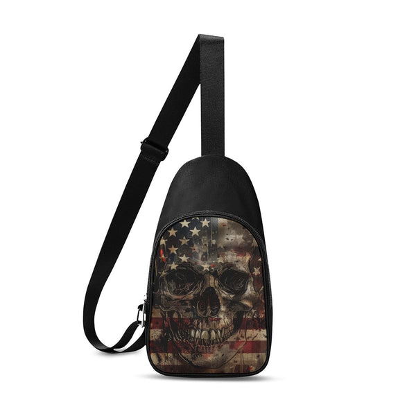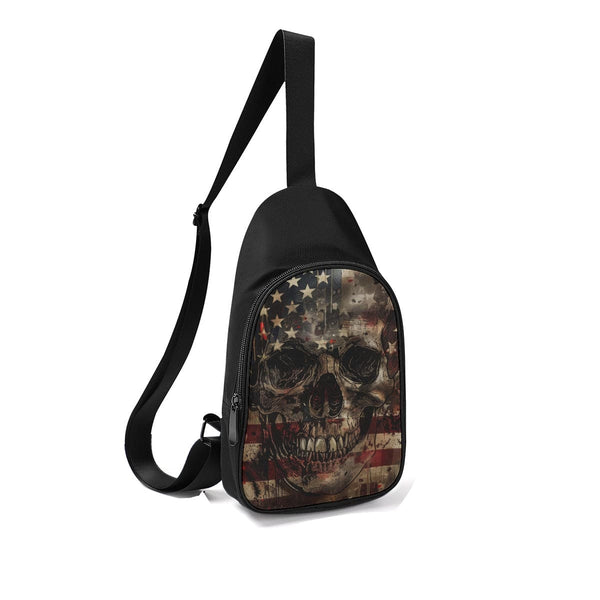 Skull USA Flag Adjustable Shoulder Strap Chest Bag