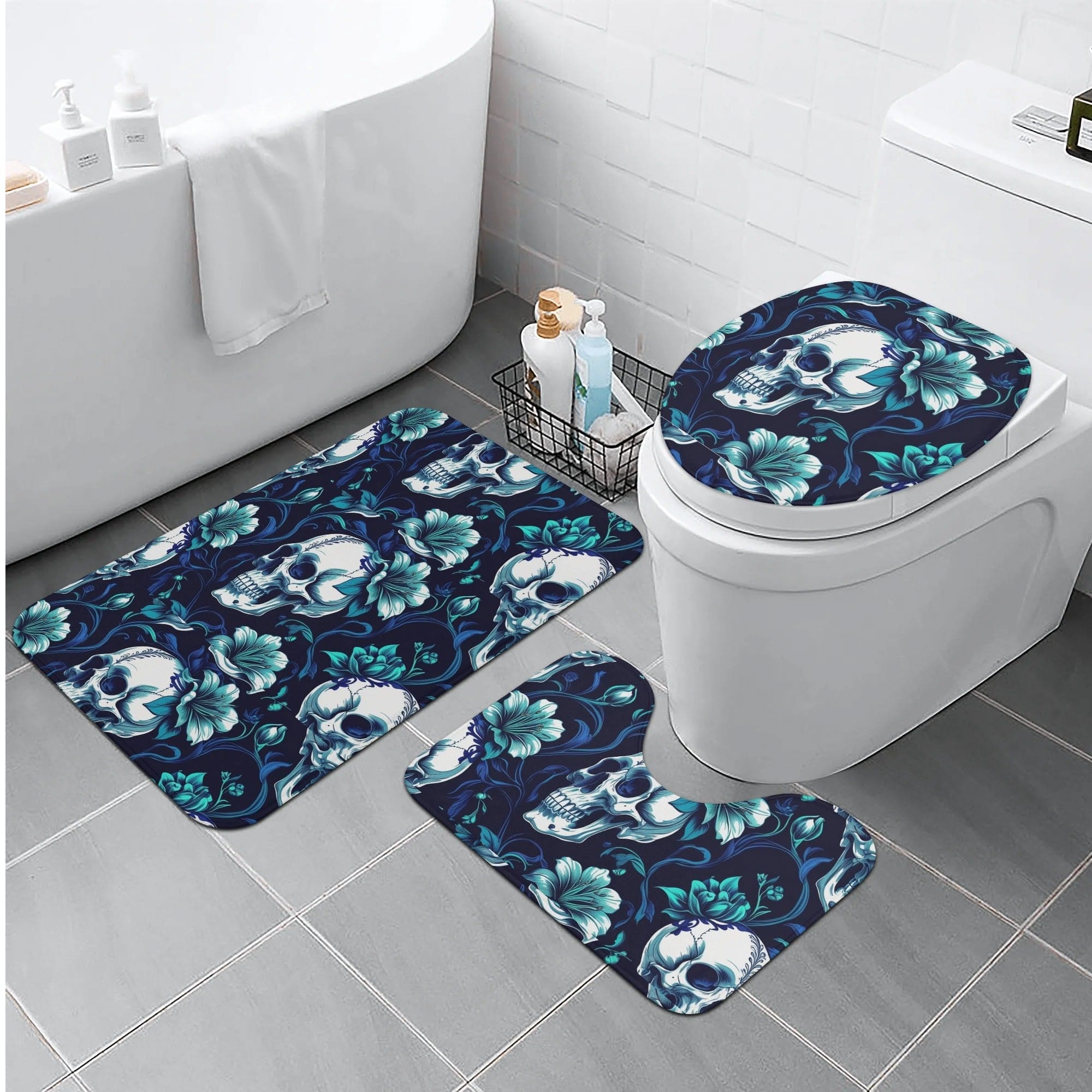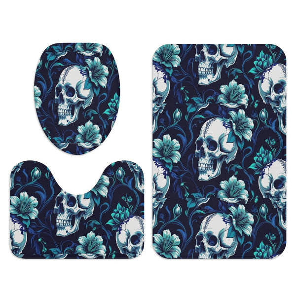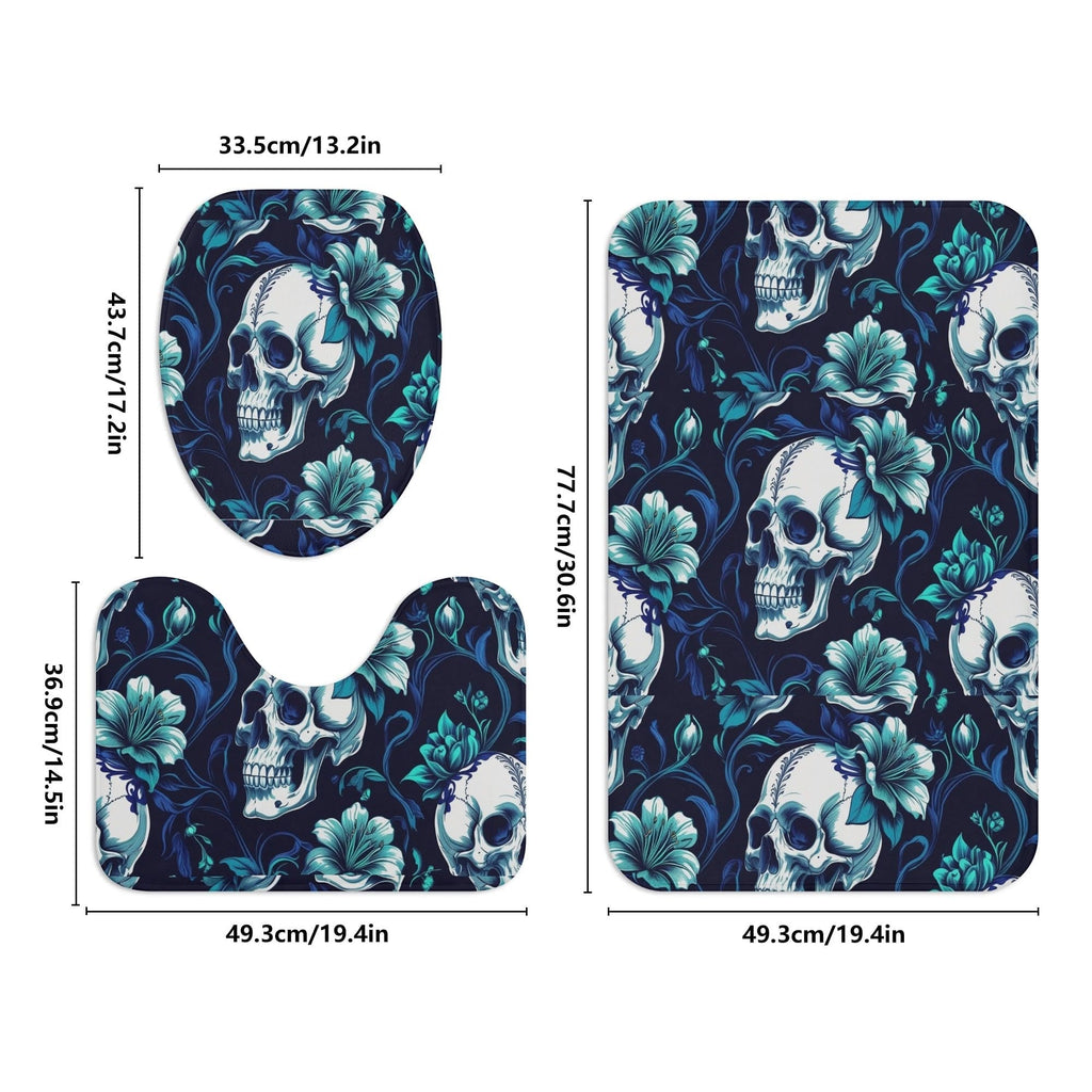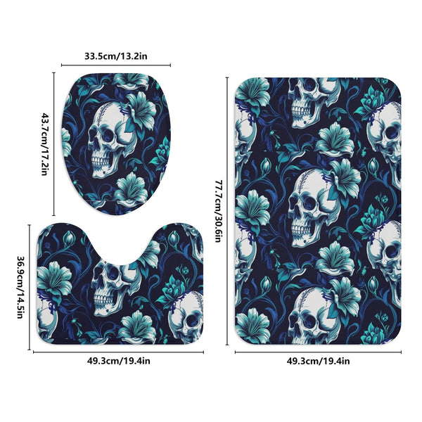 Skulls & Blue Flowers Bath Room Toilet Set