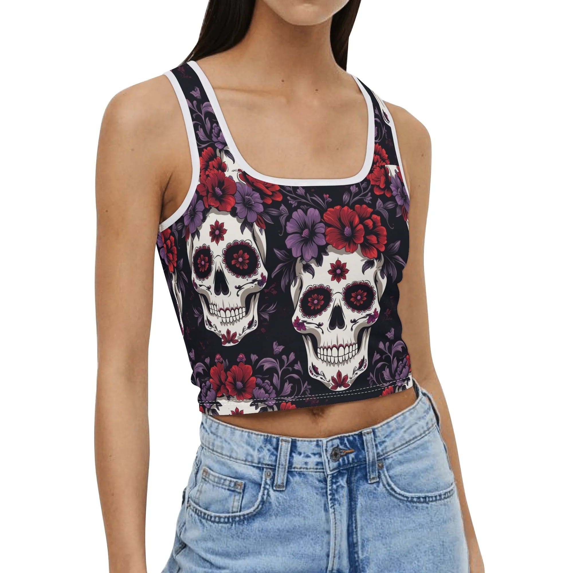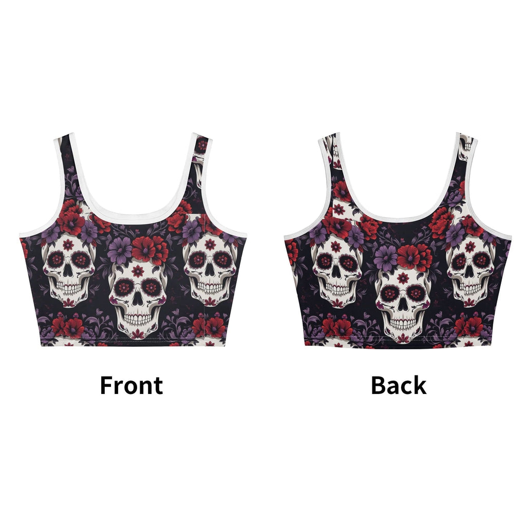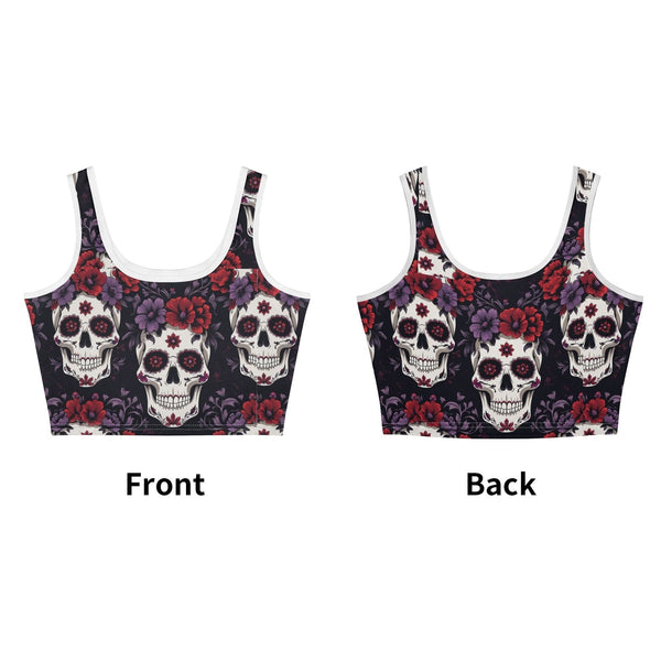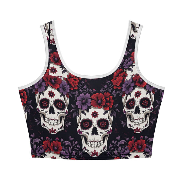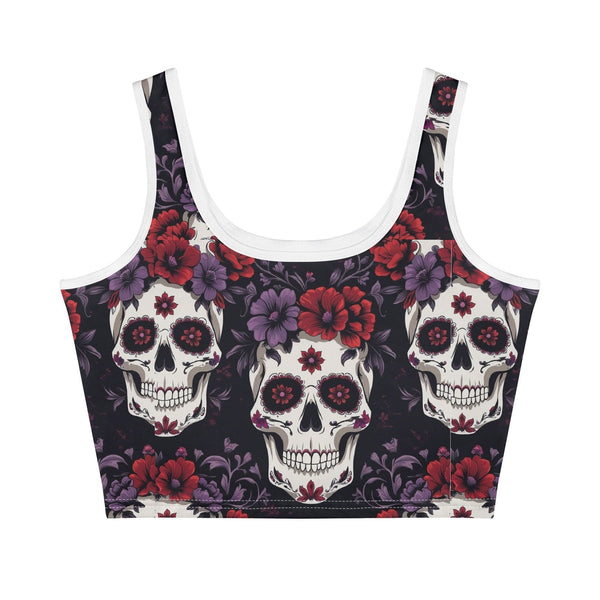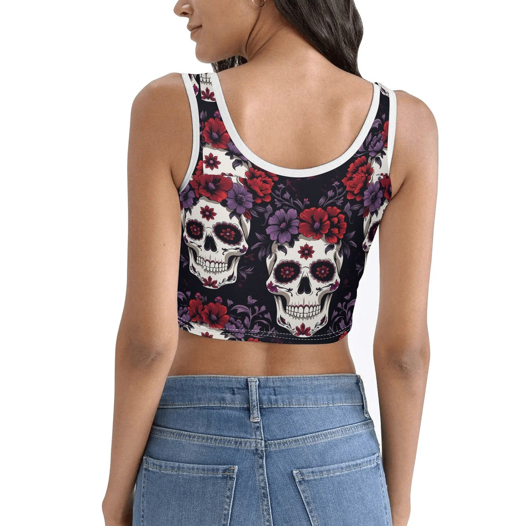 Womens Colorful Skulls Casual Crop Tank Top