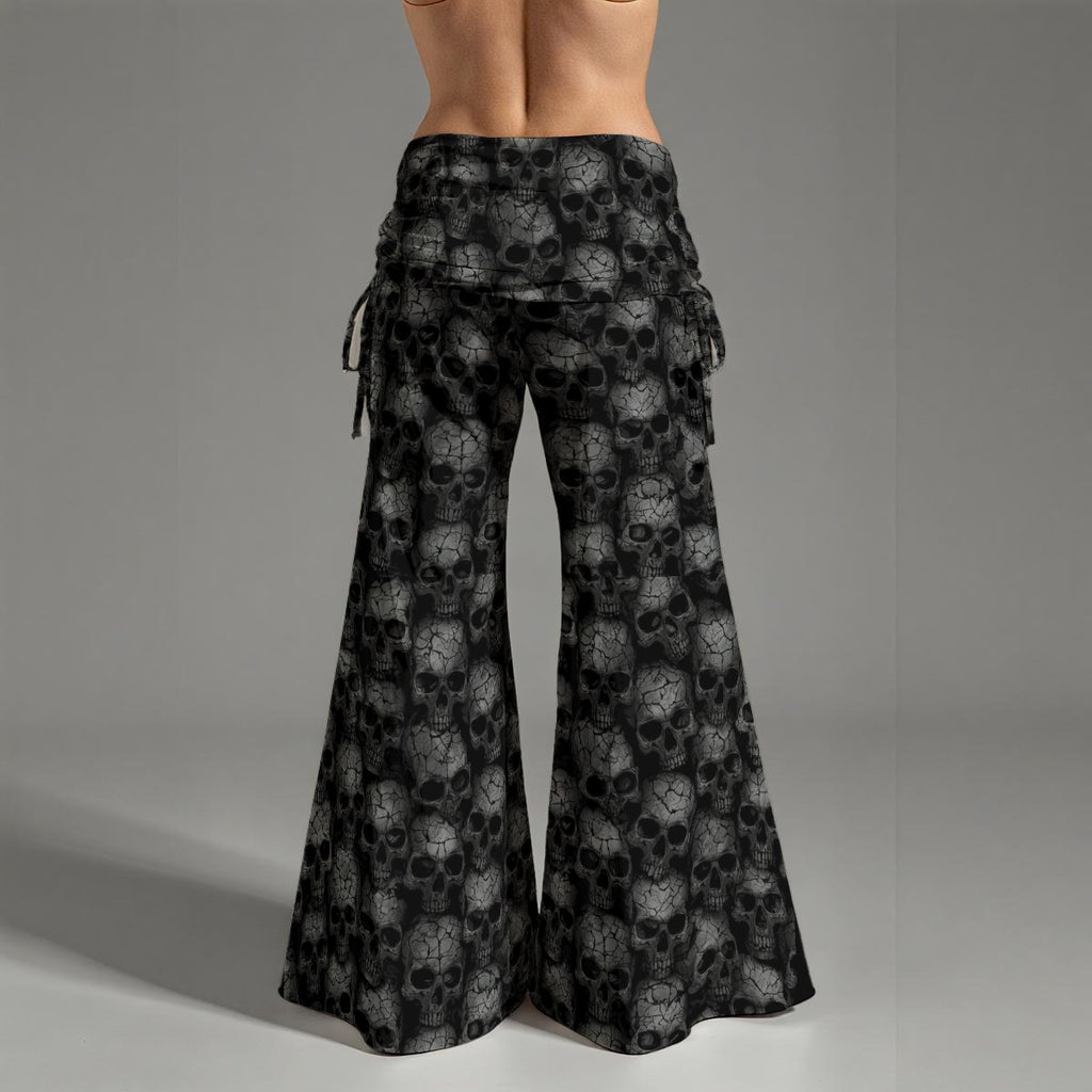 Elevate your everyday wardrobe with these striking Women's Dark Skulls High Waist Wide Leg Pants. Designed with a sophisticated fold-over waistband and side pleats that cinch for a refined silhouette, they deliver both comfort and edge. The generous wide-leg silhouette moves with you, offering breathable, lightweight fabric that keeps you cool throughout the day. Whether you're dressing down for casual outings or elevating your look with heels, these pants seamlessly transition from day to night while making an unmistakable style statement.