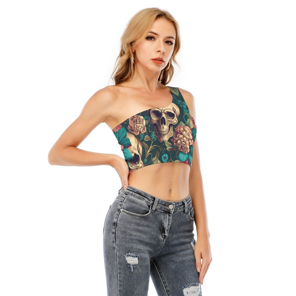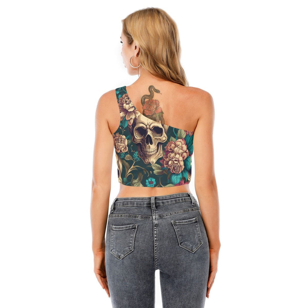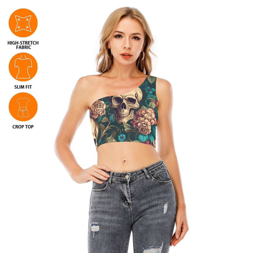 This one-shoulder cropped top features a sleeveless design with an exposed waist, creating a bold and stylish look. Its slim fit and soft, stretchy fabric provide comfort and flexibility, perfect for active wear while highlighting your stunning silhouette.