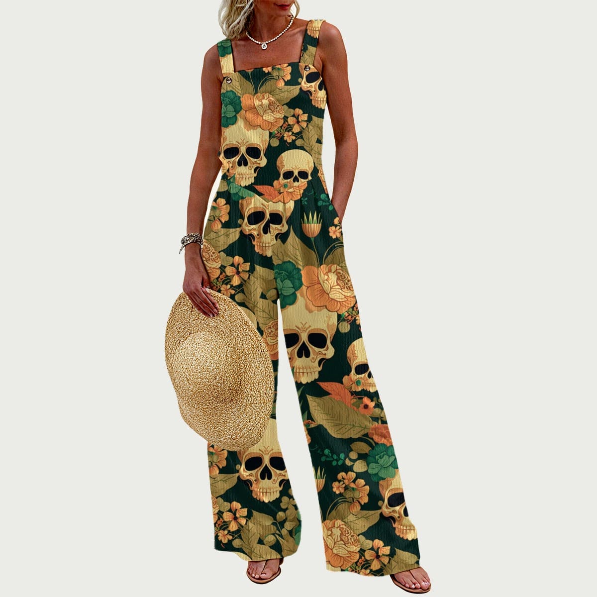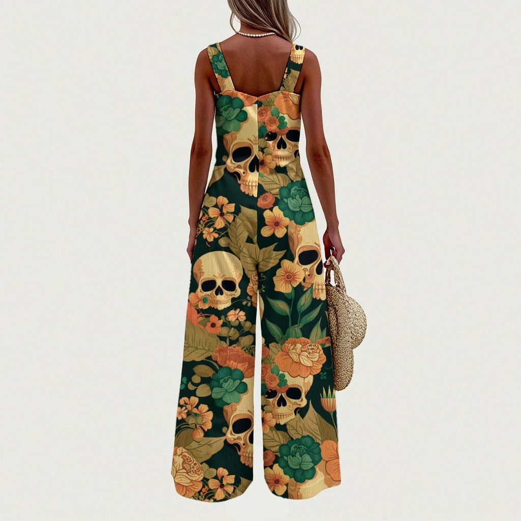 Women's Orange Skulls Floral Wide-Leg Jumpsuit