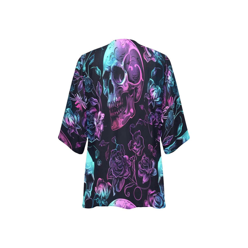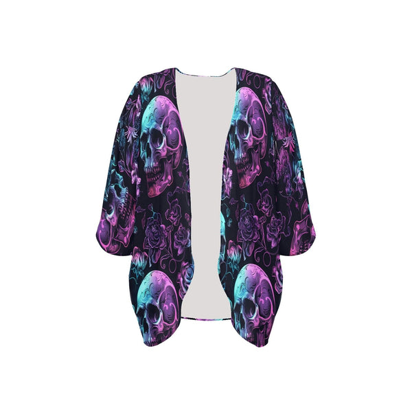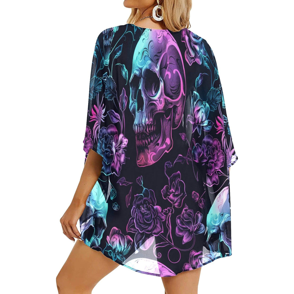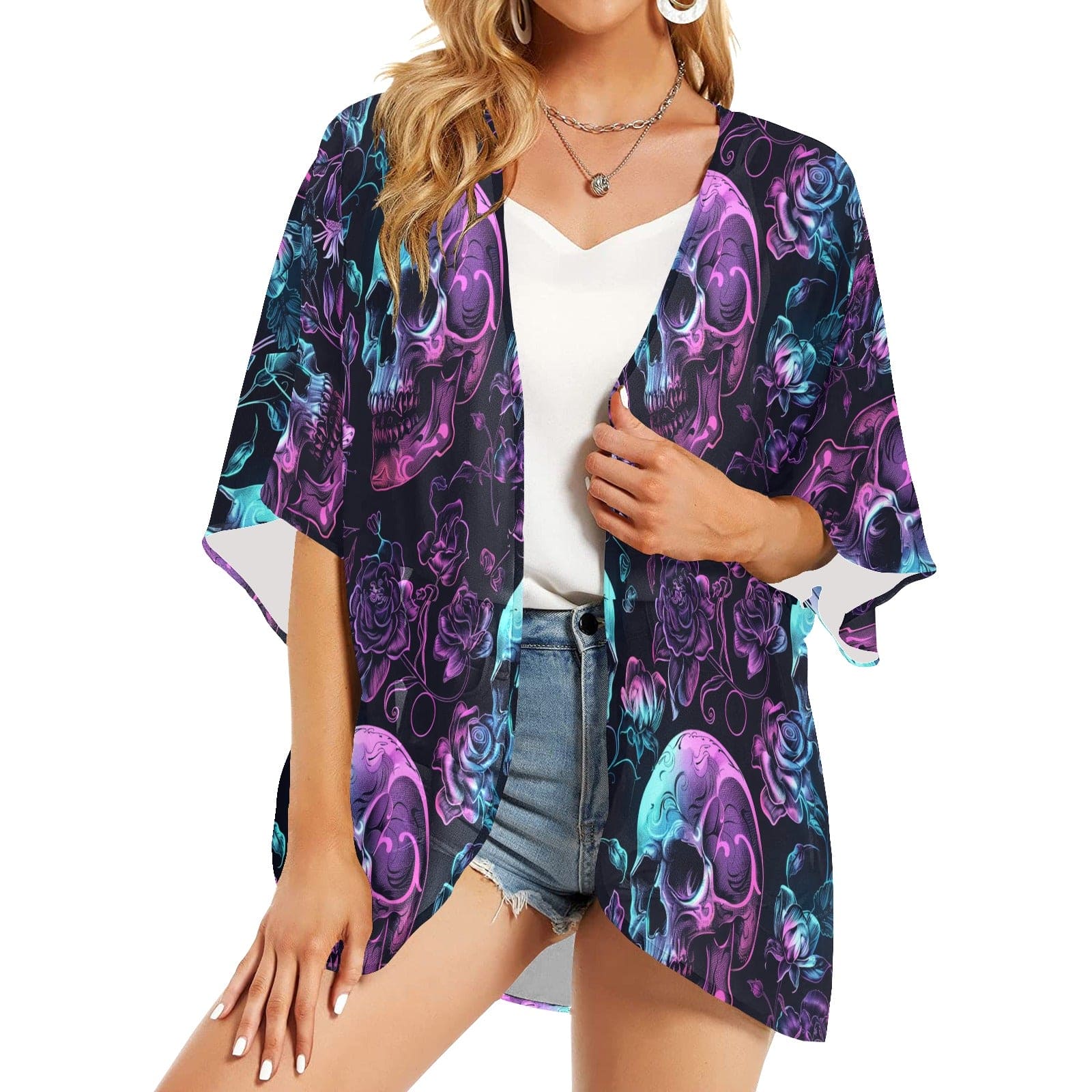 Women's Purple And Blue Skulls Kimono Chiffon Sweater