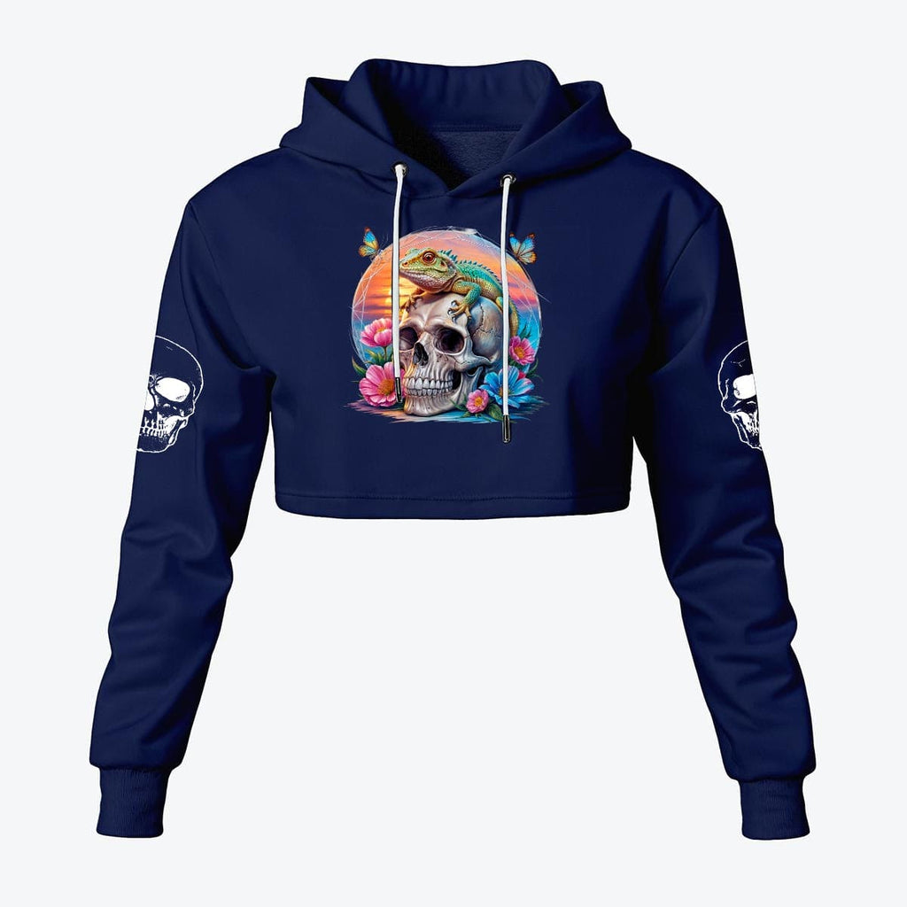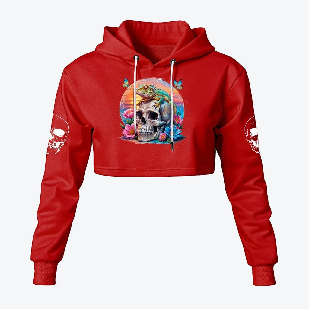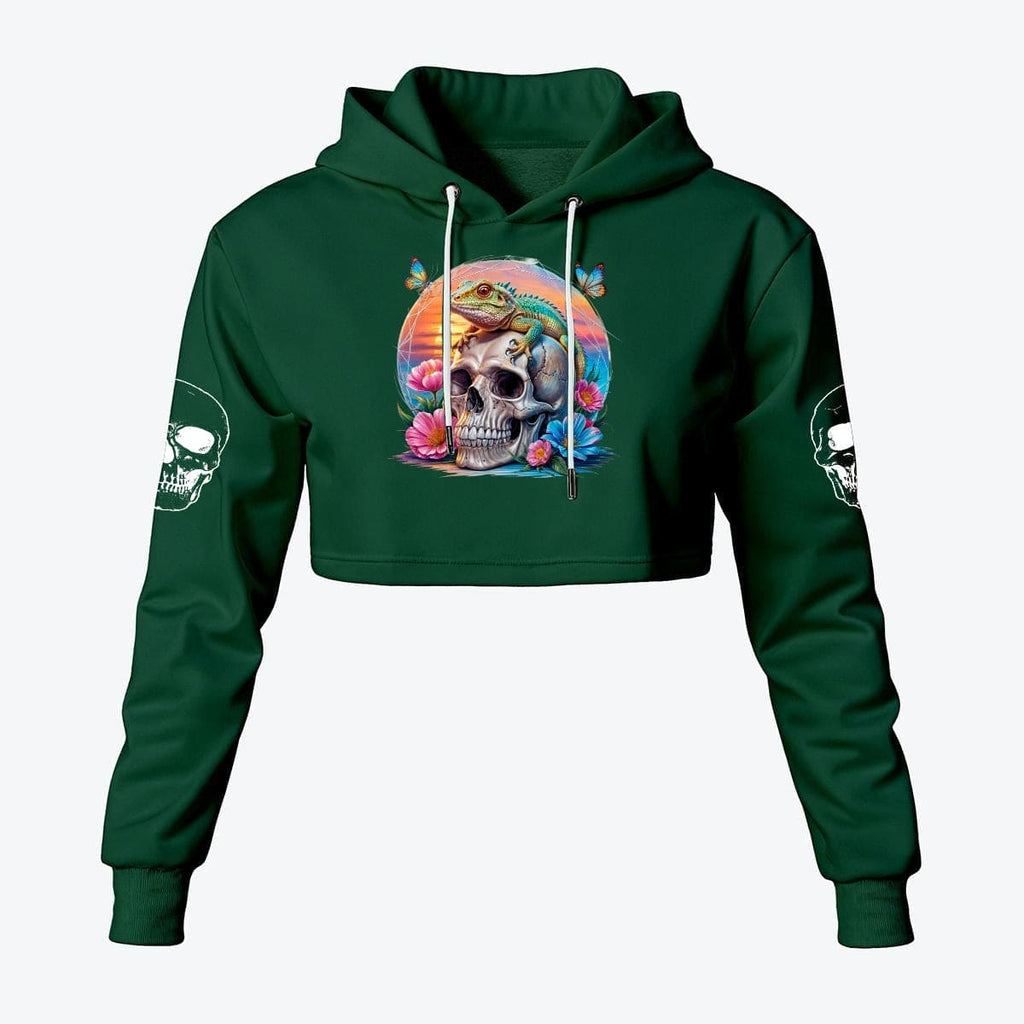 Women's Skull And Lizard Cropped Hoodie