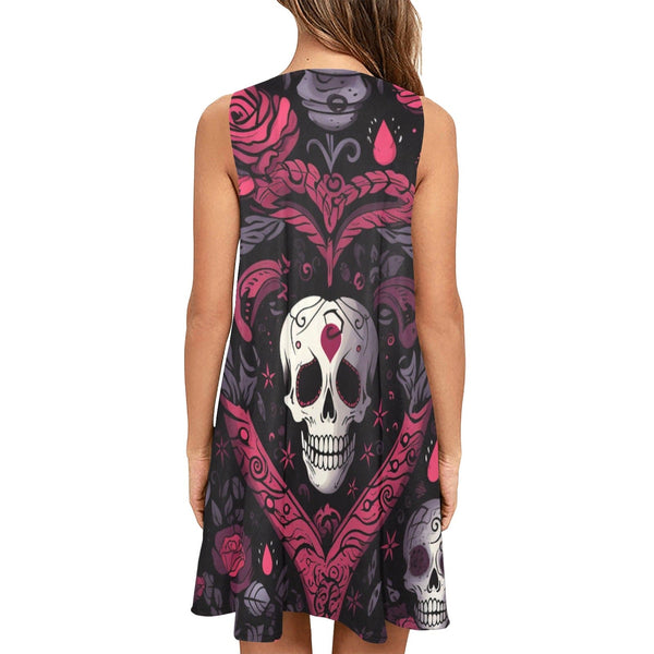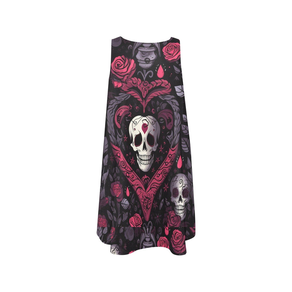 Women's Skull In A Pink Heart Sleeveless Pocket Dress