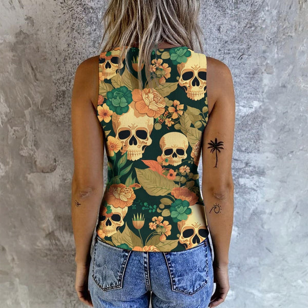 Bring vibrant color to your closet with this chic ribbed tank top. Crafted from soft, stretchy fabric, this sleeveless piece features delicate vertical ribbing for a flattering, snug fit. The button-front detail enhances its fashionable appeal.