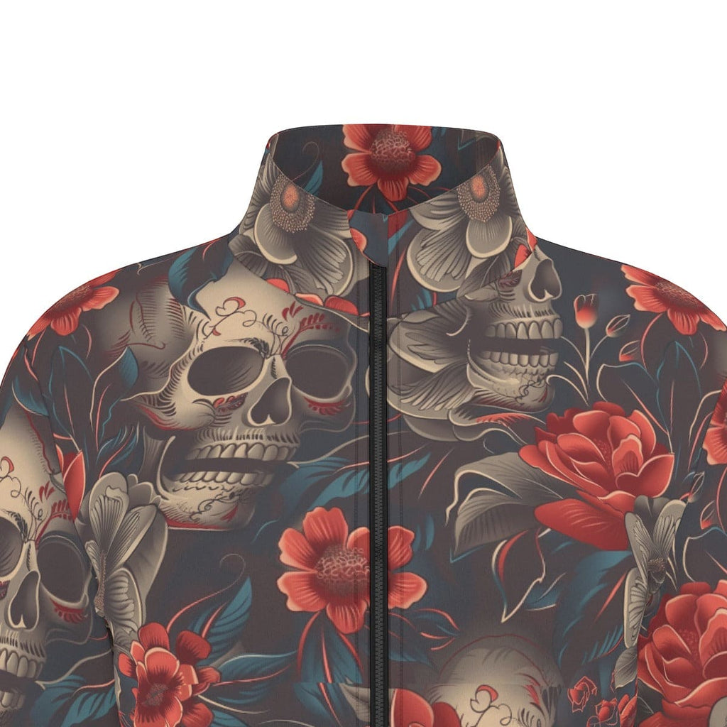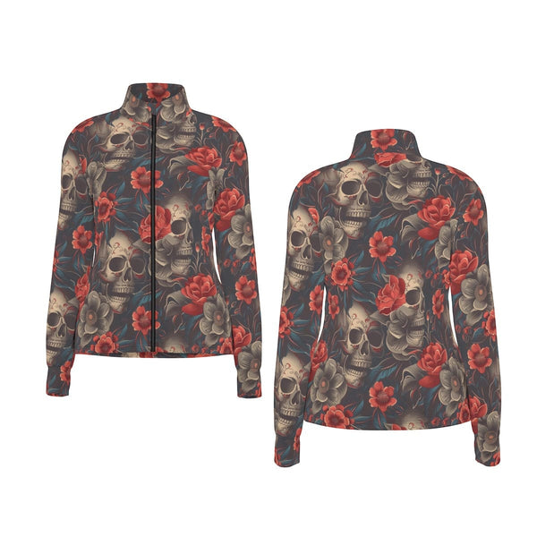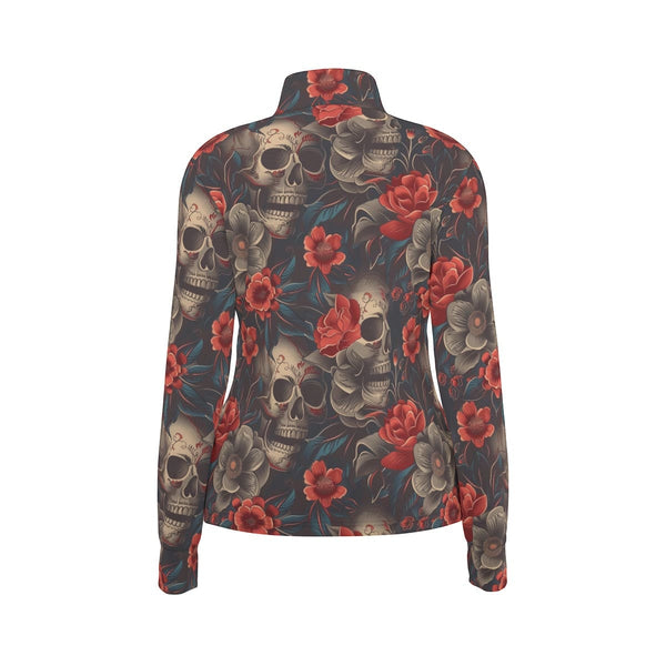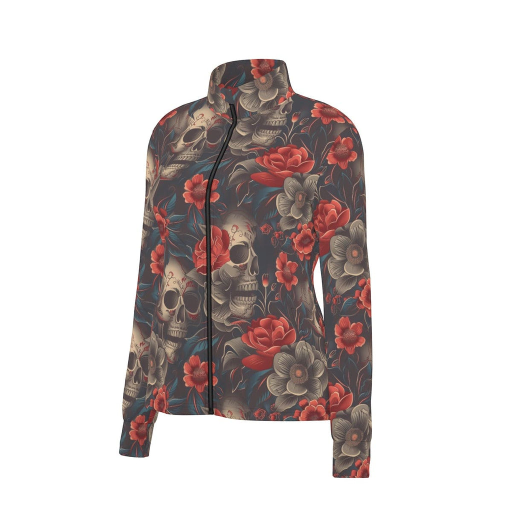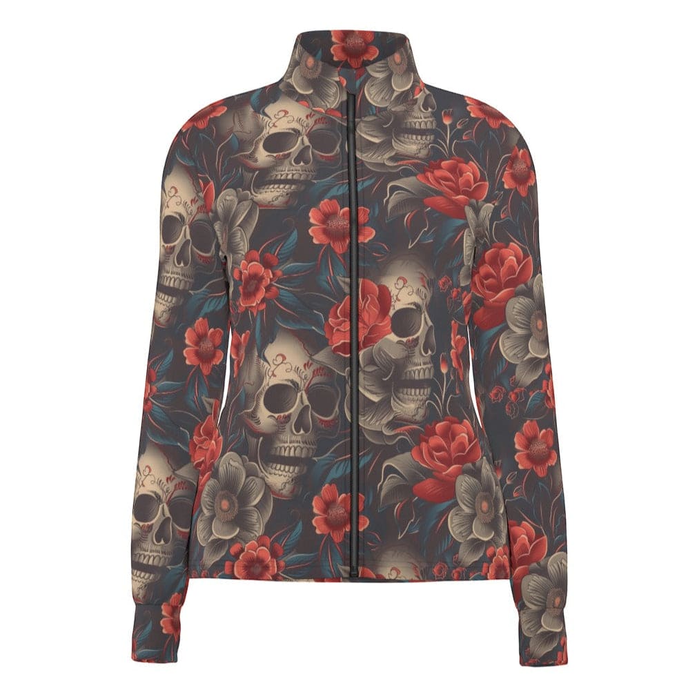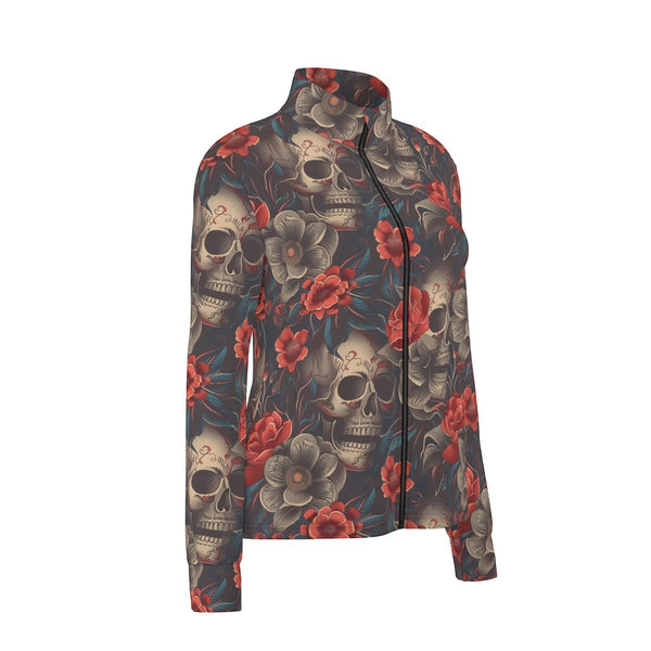 Women's Skull Red Roses Long Sleeve Thumbhole Jacket | Polyester & Spandex Blend